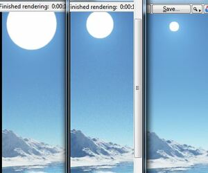 Bekanntlich gibt es im 3D Raum etliche Dinge mehr, die das Bild Ergebnis beeinflussen bzw. verändern.Z.B. das eingesetzte Lichtsystem, die Kameraperspektive (1), die Blendeneinstellung (2) usw.. Diese Veränderungen erfordern dann allerdings einen Render Neustart (3).