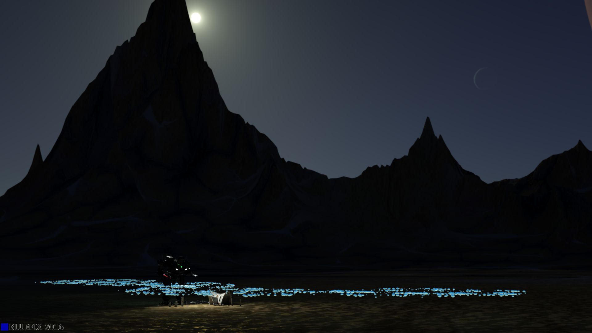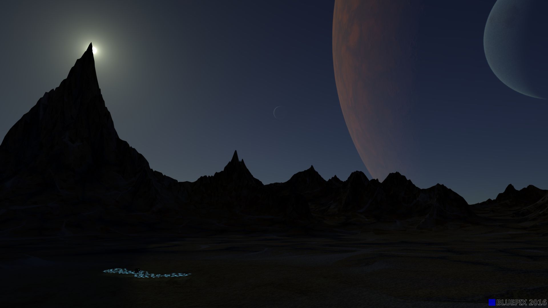 Einen Terrain Editor wie in Vue scheint es nicht zu geben oder ich habe ihn noch nicht ganz verstanden. Ich habe also "nur" einen ganzen Planeten als Spielwiese und einen Zufallsgenerator.
