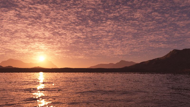 Das Licht ist auch hier ein globales System und interagiert physikalisch korrekt u.a. auch mit den volumetrischen Wolken oder der Atmosphären Dichte (density),