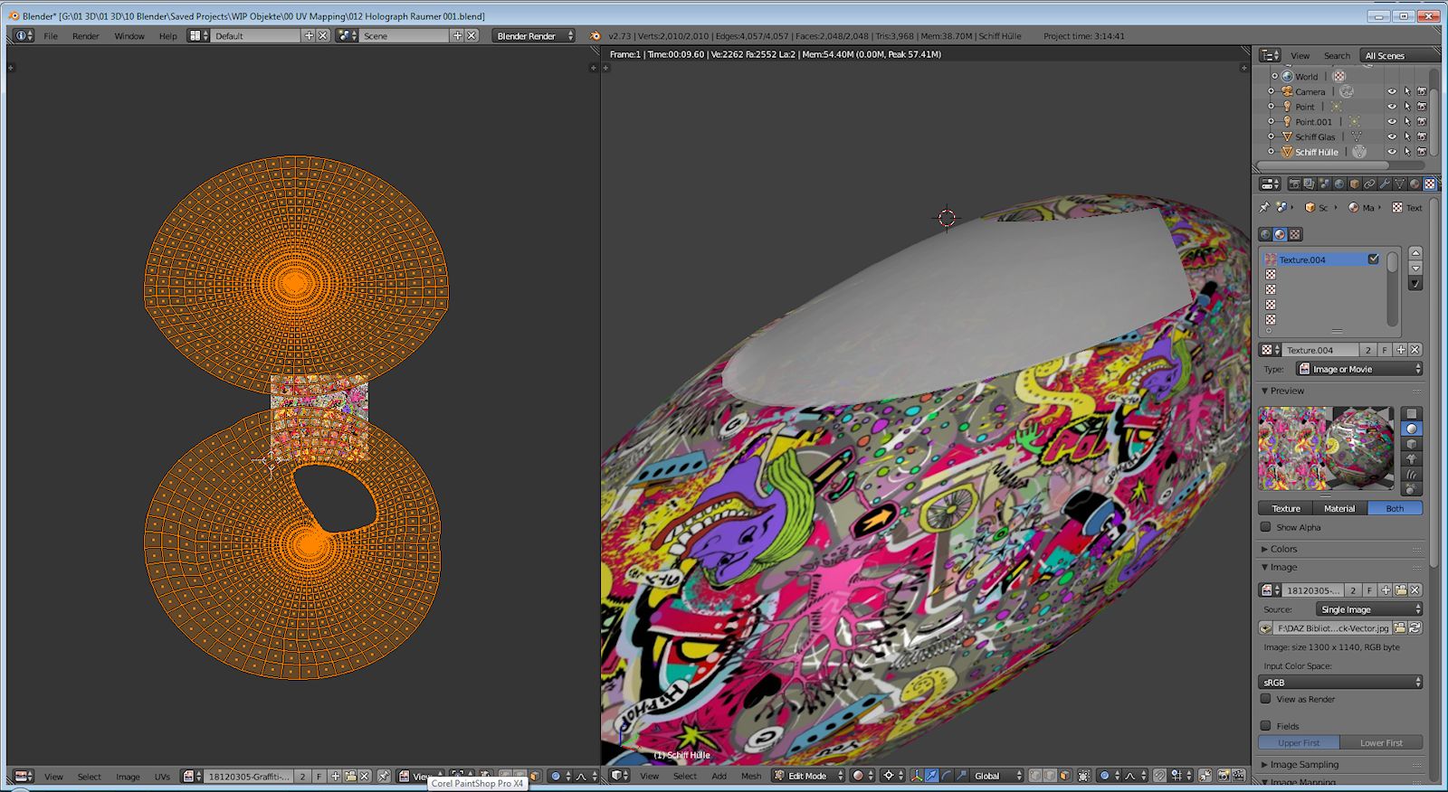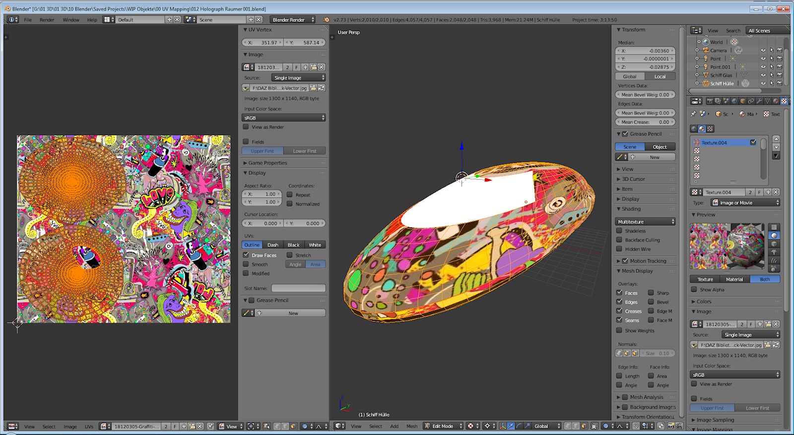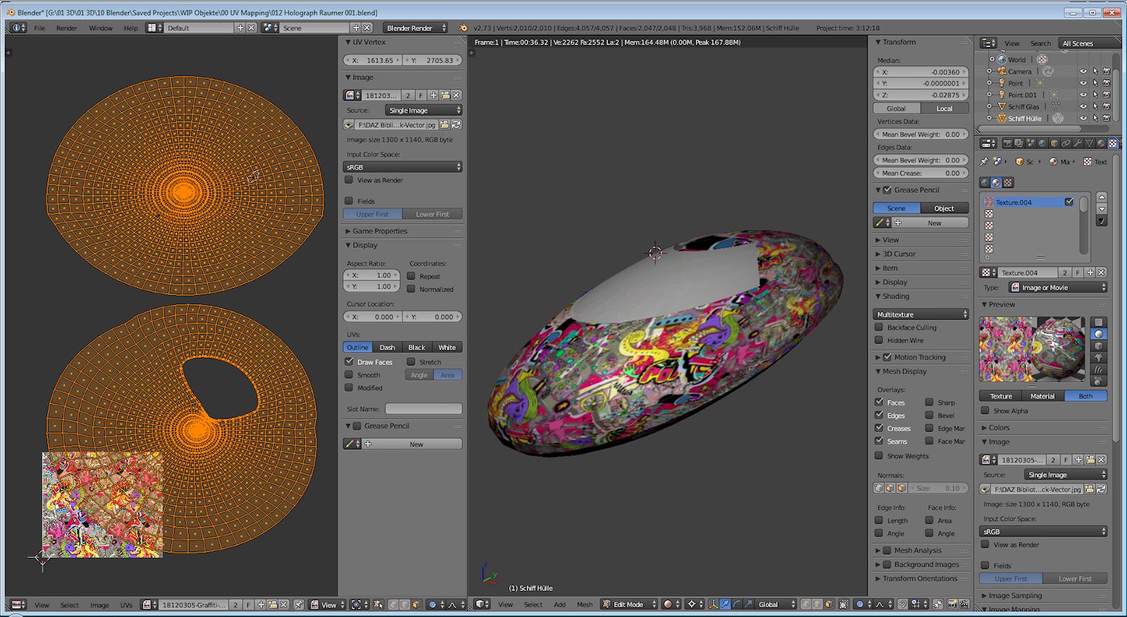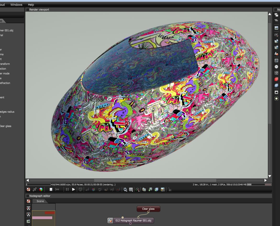 Hier geht es zu dem Eintrag: Holugraph Raumer mit Graffiti Textur (Diskussion hier im Blender Forum "Am Anfang war der Würfel)
