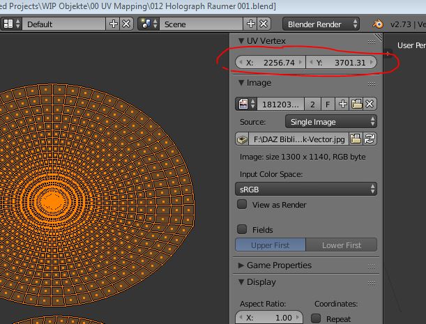Keine Ahnung wie groß die UV ist. Damit das Texturergebnis auf dem Objekt so aussieht wie ich es haben will muss ich die UV skalieren. Unskaliert sieht es so aus (003) und das will ich ja nicht. Also skalieren, dann schauts so aus (004), wie dann im Blender View rechts auch korrekt gerendert. Und was ist jetzt wieder dieser Bahnhof "power of two"?