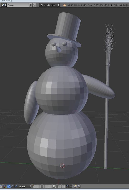 Was den Schneeman betrifft, nehme ich mal an , daß Du die Kugel etwas ineinander geschoben hast. Ein gutes [lexicon]Mesh[/lexicon] hat allerdings keine Flächenüberschneidungen. Vielleicht gewöhnst Du Dir beim Modeln das gleich an.