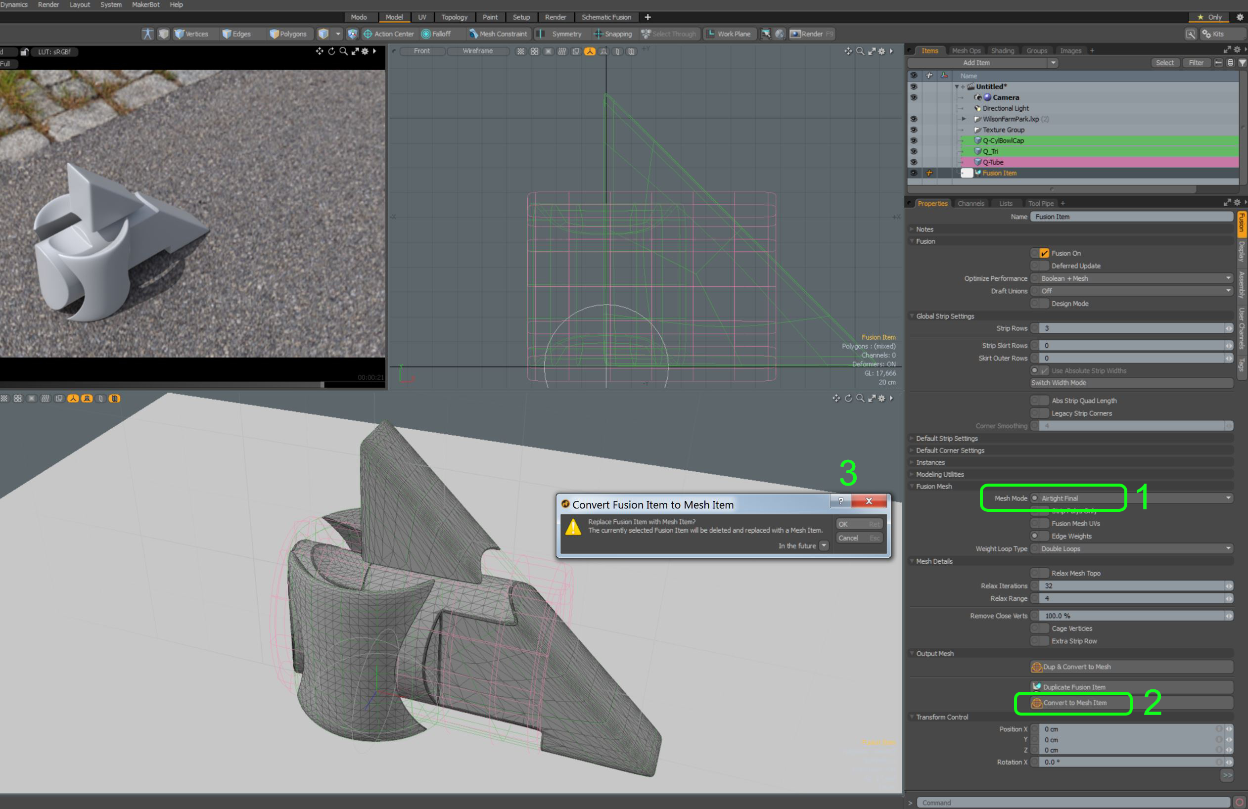 Aus der Modo Datenbank ein oder mehrere MeshFusion