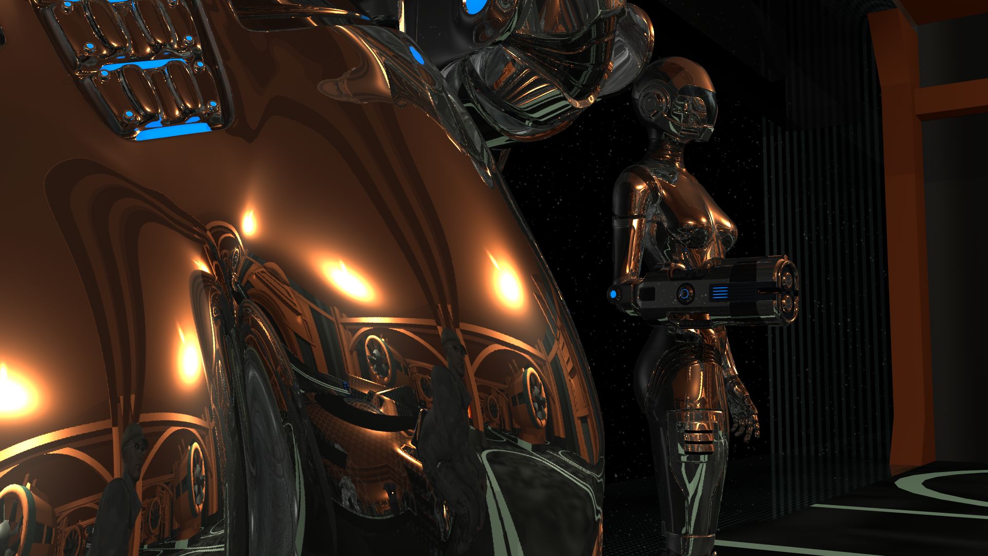 Momentan bevorzuge ich immer noch die in DAZ eingebaute 3Delight Engine. Ganz einfach aus dem Grund, weil sie schnell ist. Das Bild mit den Spiegelungen z.B. haut 3Delight in 7 Minuten raus und das andere in 180 Sekunden. Mit DistLight, UE Light, 3 Spotlights und Spiegelungen, ist das ja nun nicht gerade ein mieses Ergebnis.
