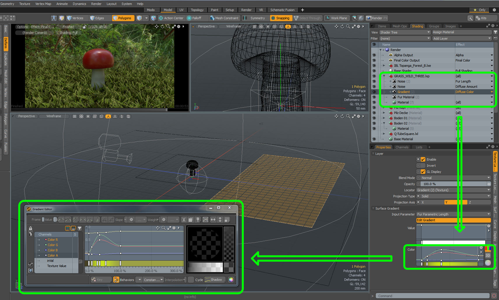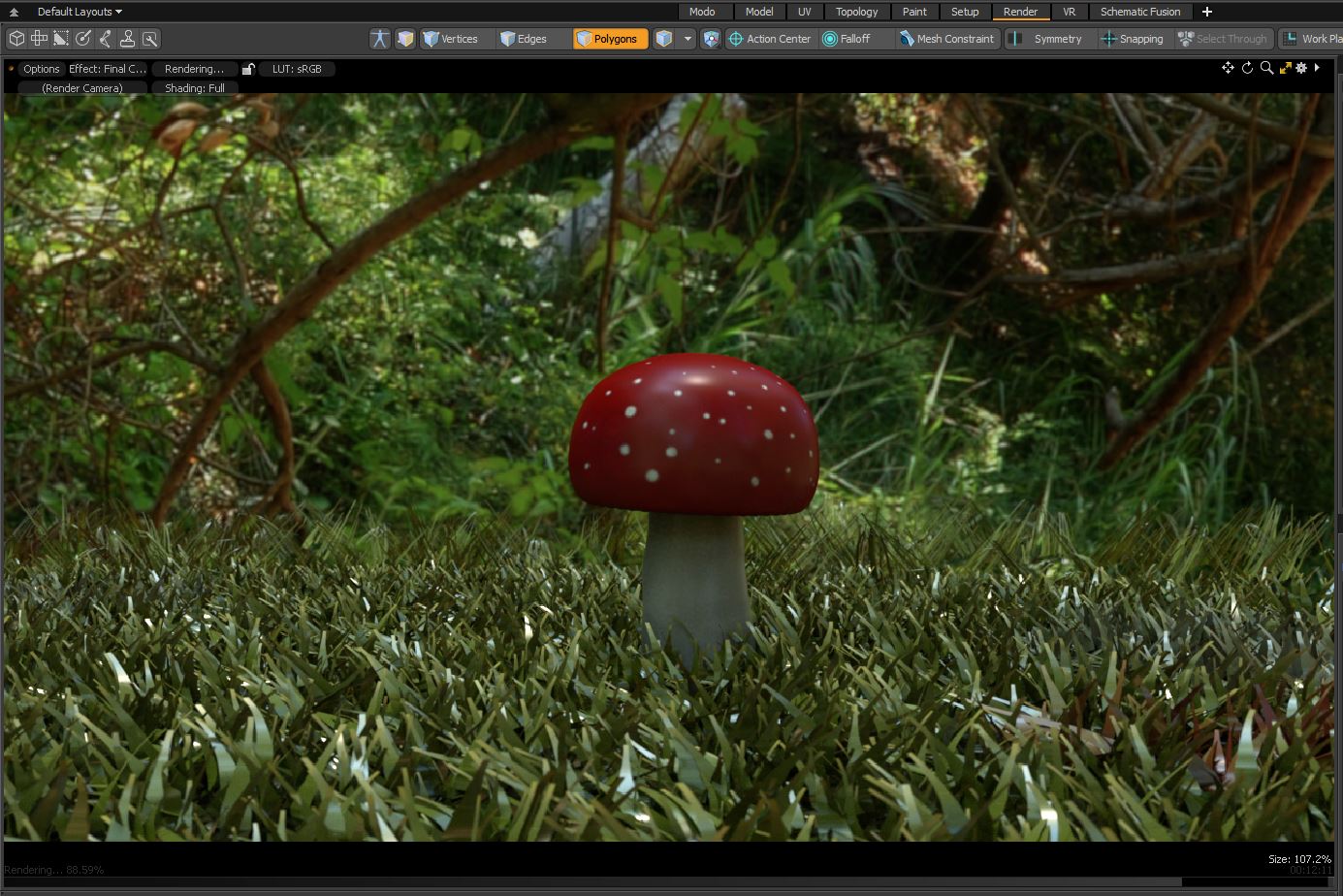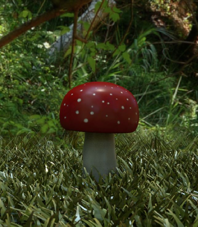 Und wenn der Pilz schon so nett anzusehen ist, wollen wir auch die Wiese (Texture) und den (IBL) Wald dazu,