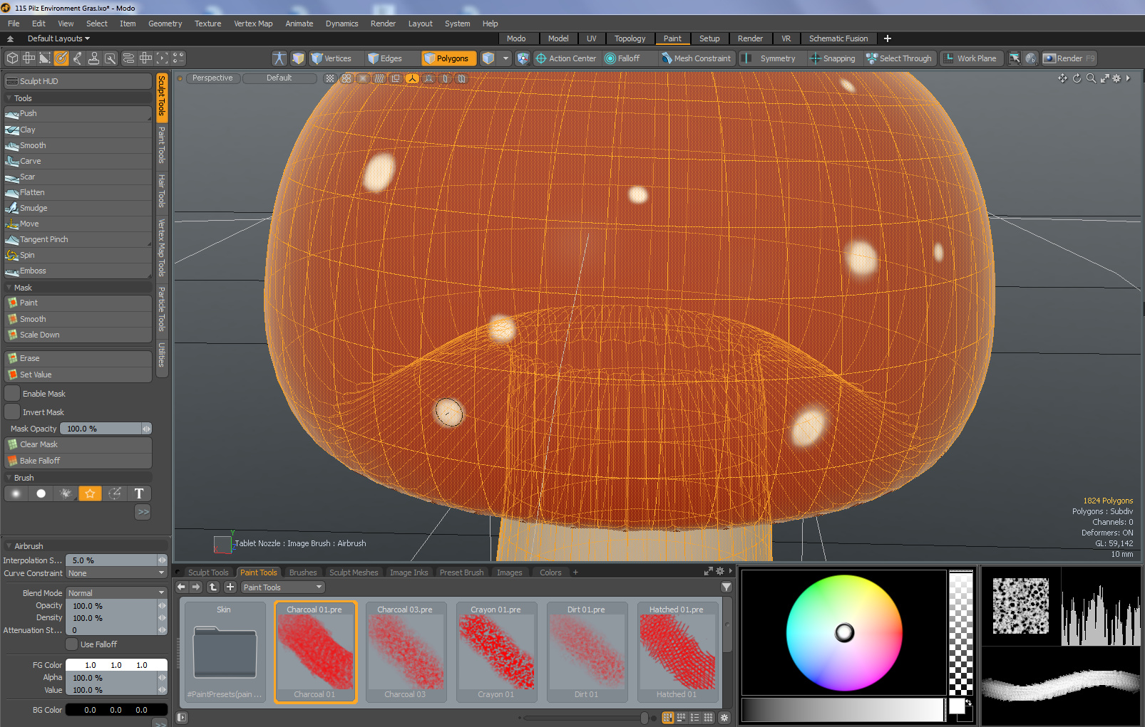 Also habe ich den Pilz in Modo Paint nicht nur angemalt, ...
