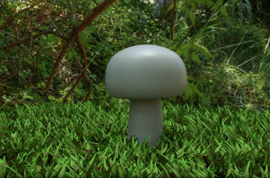 Jetzt könnte man mittels prozeduraler Texturen Pilz und Gras noch dreckiger/unruhiger machen,