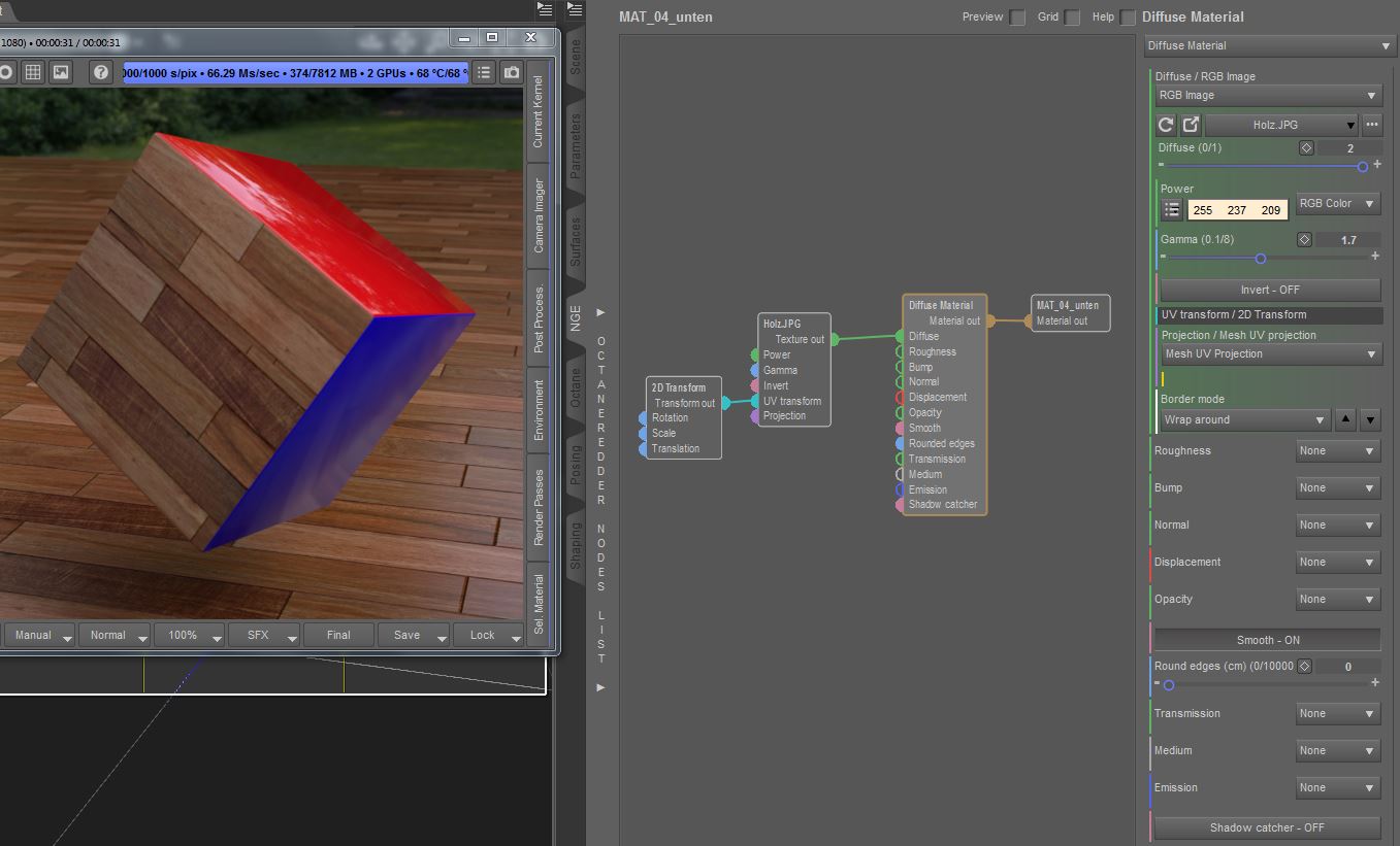 Schön jedoch, dass sich in (fast) jedem 3D Programm zurechtfindet, wer einmal die Grundzüge der Materialbearbeitung verstanden hat.