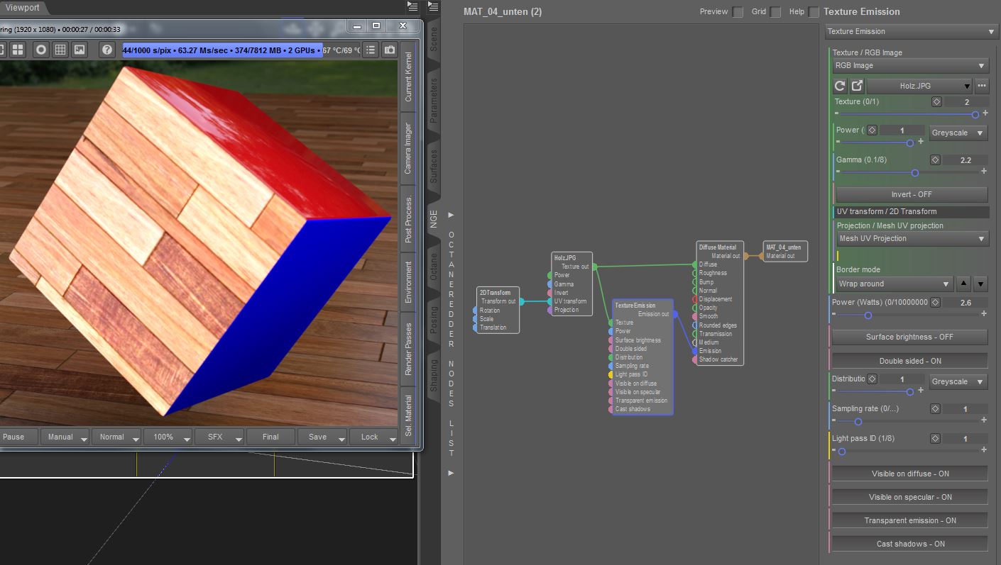 können Oberflächen auch leuchten lassen. Denn „Emission“ ist auch nur eine von vielen Oberflächeneigenschaft. Die Oberfläche wird selbst zu einer aktive Lichtquelle, ein Licht Emitter.