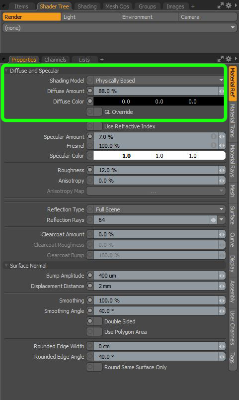 Jedes Material fähige 3D Programm verfügt über einen Bereich (Shader Tree / Properties, Surfaces usw.) in dem ich die Shader manipulieren oder auch erschaffen kann. Herkömmlich werden die Shader und ihre Kanäle
