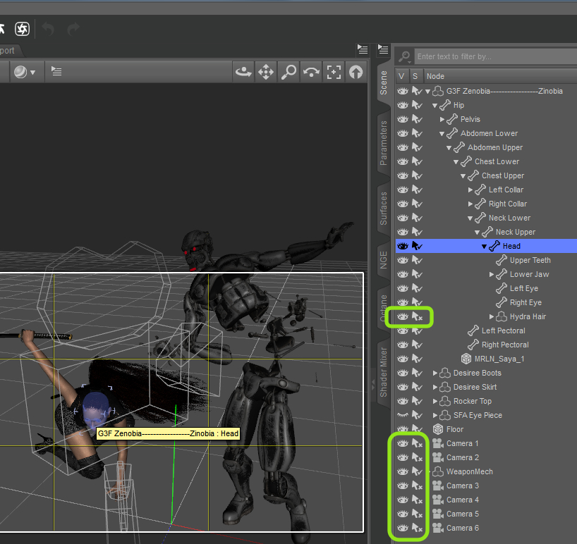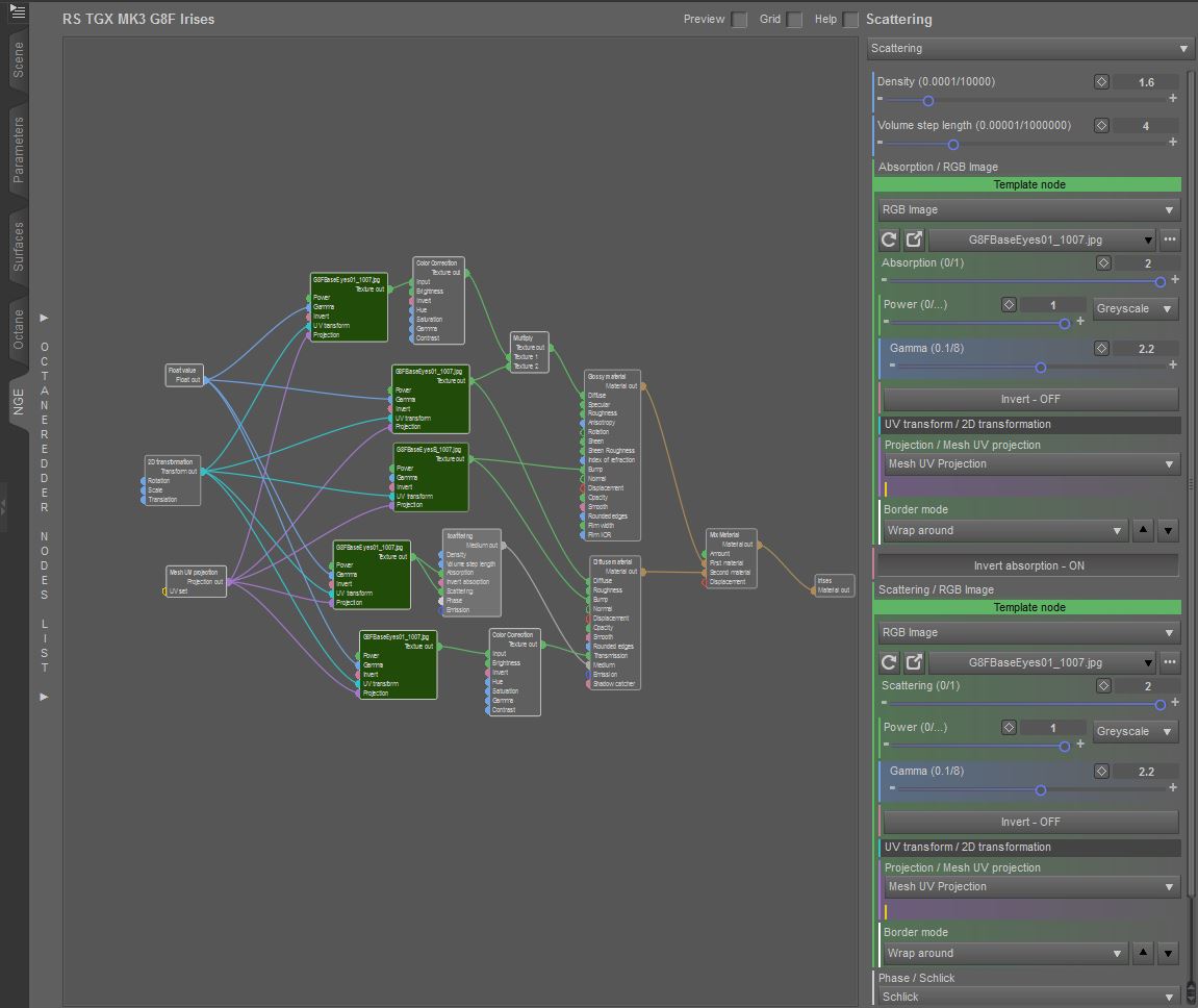 Wenn Ihr rechts die Listendarstellung um 5 Seiten nach unten erweitert, hättet Ihr den gesamten Shader der Iris einer Genesis 8 vor Euch.