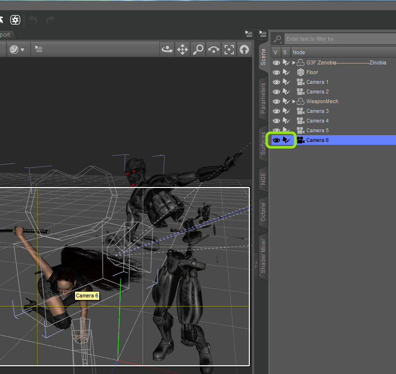 Renderkamera auf den Boden gerichtet, mit dem Windows Sniping Tool kurzerhand