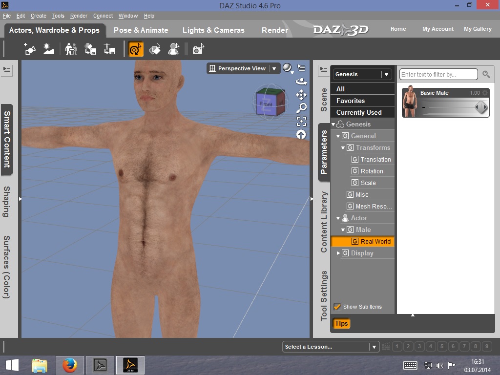 Auf dem ersten Bild geladene Genesis-Figur mit leeren Parametern.