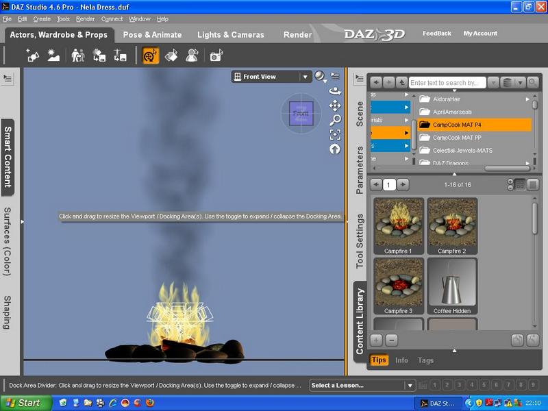 Thema Campfire,hat mich sehr viel Nerven gekostet.Ich habe jede Readme-Datei zigmal gelesen und dann habe ich den Fehler entdeckt.Obwohl im DAZ-Shop für DAZ-Studio verkauft wird,stimmt das nicht wirklich.Es ist Poser.Deshalb rendern die Flammen nicht mit.Aber da ich schon was gelernt habe,vor dem Rendern die Flammen im Image-Editor farblich bearbeitet und schon hat man nach dem Rendern gelbe Flammen.