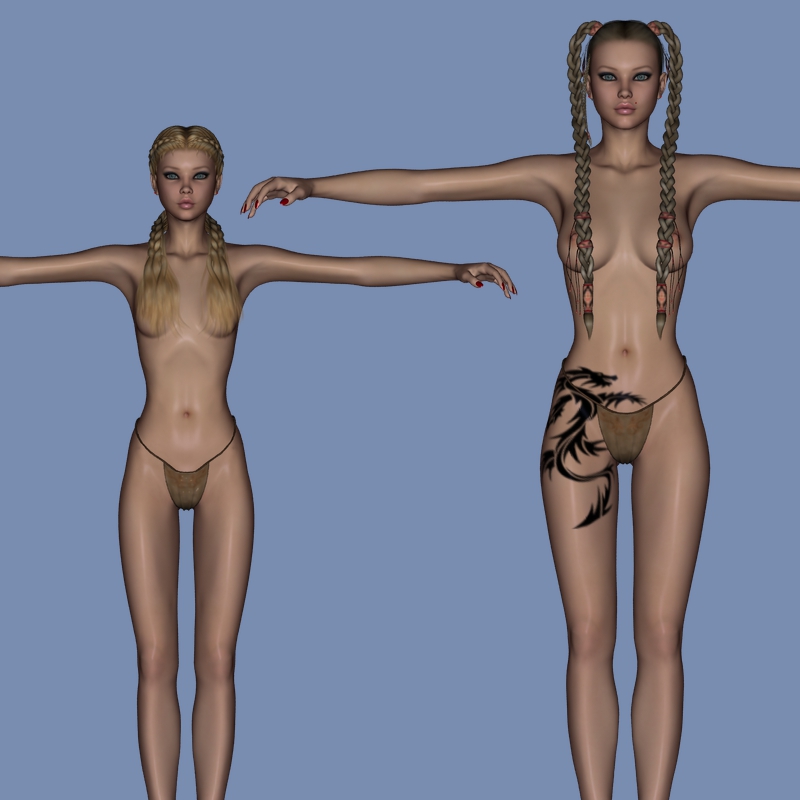 Nachdem bei meinem Testbild "Überlebenskampf" - was ich nicht mehr bearbeiten kann,ich habs gar nicht abgespeichert gehabt,die Problematik Haare zu Sprache kam,hab ich mich meinem eigentlichen Projekt wieder zu gewandt und habe mich entschlossen,aller 23 Bilder der ersten Szene nocheinmal - es wäre dann das vierte Mal - neu zu machen.Ich habe jetzt Frisuren genommen,die ich bei jedem Posen besser gestalten kann,d.h.es rutschen keine Haare mehr in den Oberkörper oder in die Rüstung.Bedeutet nun aber auch,dass jedes Bild wesentlich länger dauern wird.Bild 01 und 02 sind aus der alten Serie,Bild 03 und 04 die neuen Figuren.