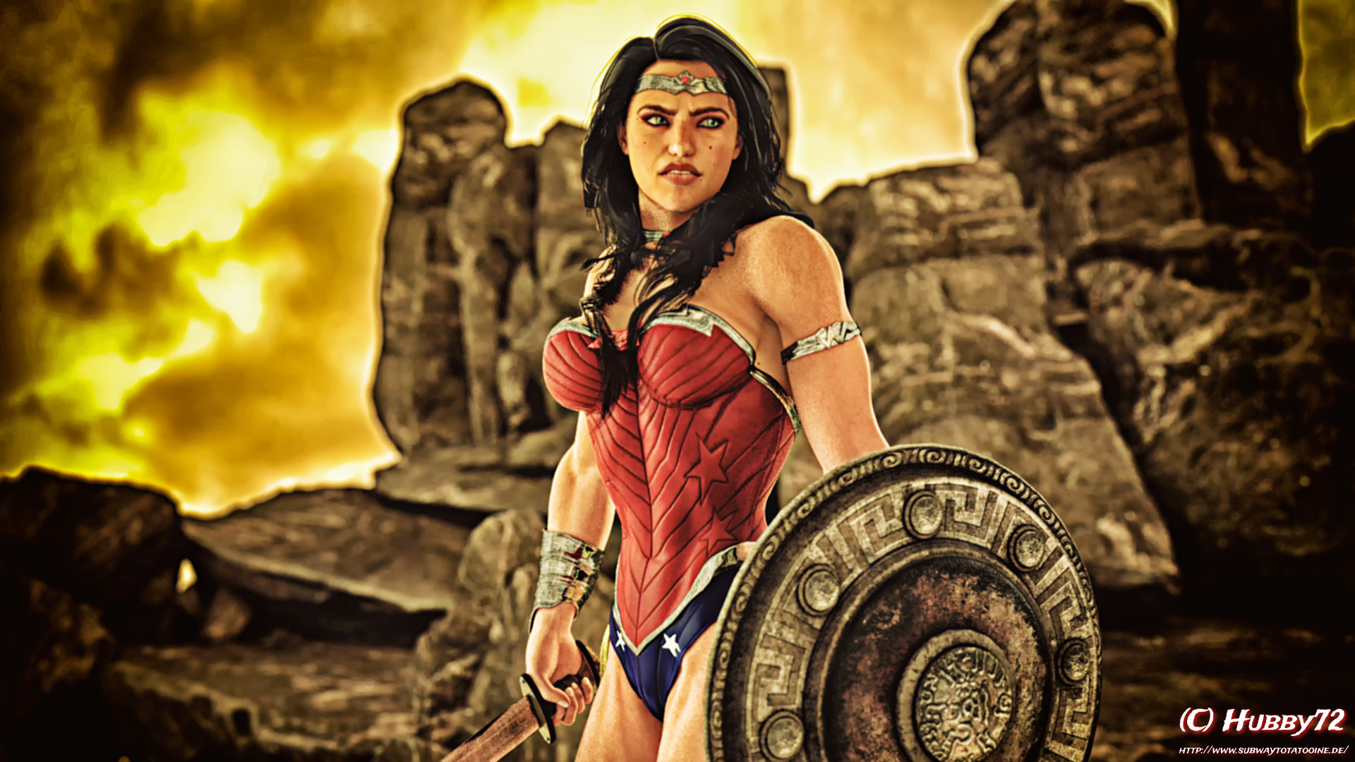 Als Kritik ich würde erwarten, dass die Zauber- und Feuereffekt mehr Einfluss auf die Umgebung haben. Der Drache dahinter muss eine sehr ungewöhnlich Flugkurve gehabt haben und der Troll auf der Treppe wirkt mir zu zahm - Stichwort Brust raus und Spannung in den Körper