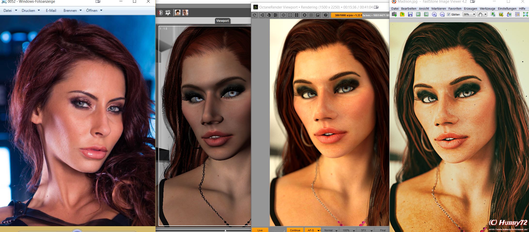 Achso und Open viewport Knopf oben öffnet den Render Viewport natuerlich. Dort kannst du immer den live render sehen und auch pausieren. Ich empfehle auch beim bau einer Szene regelmaessig unter dem Reload Knopf Rebuild scene und Reload force auszuführen. Sonst passiert gern mal ein crash wenn Du Materialen bearbeitet willst.