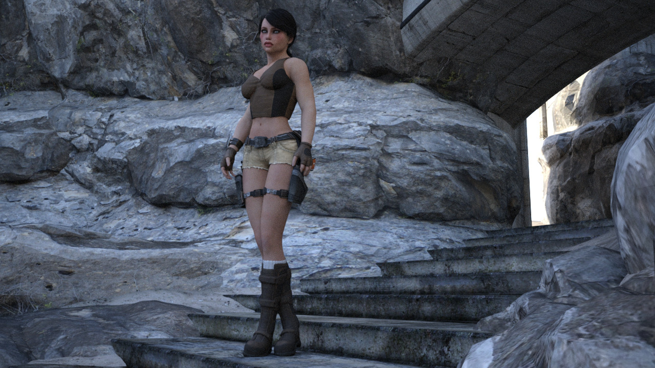 Als Licht habe ich einfach die Standard Environment genutzt. Allerdings steht Lara auch im Schatten hier.