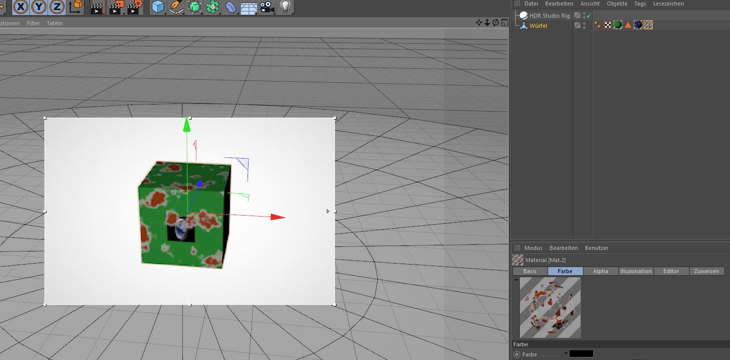 Ich möchte einen Würfel mit einen Material belegen welches mehrere Ebenen hat. bzw hier sollten noch Texturen an bestimmten Stellen (zum Beispiel durch Selektionstag) eingefügt werden. Jedoch nicht einfach Oben drauf klatschen , sondern mitten drin im Material .