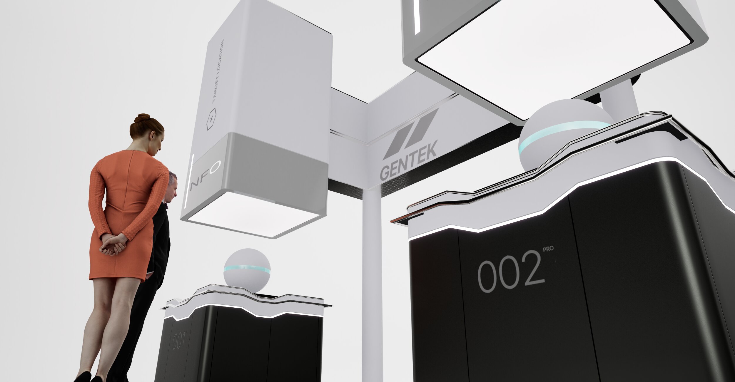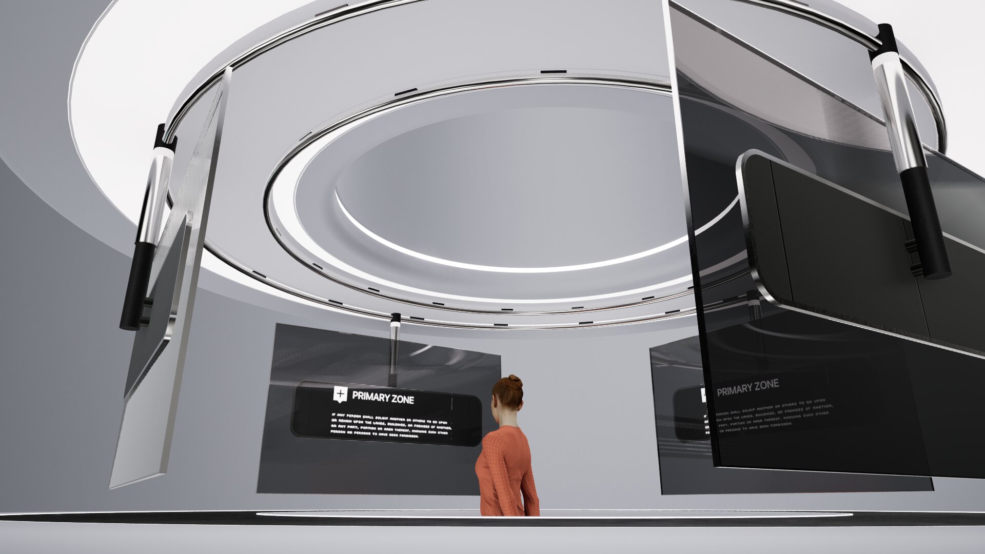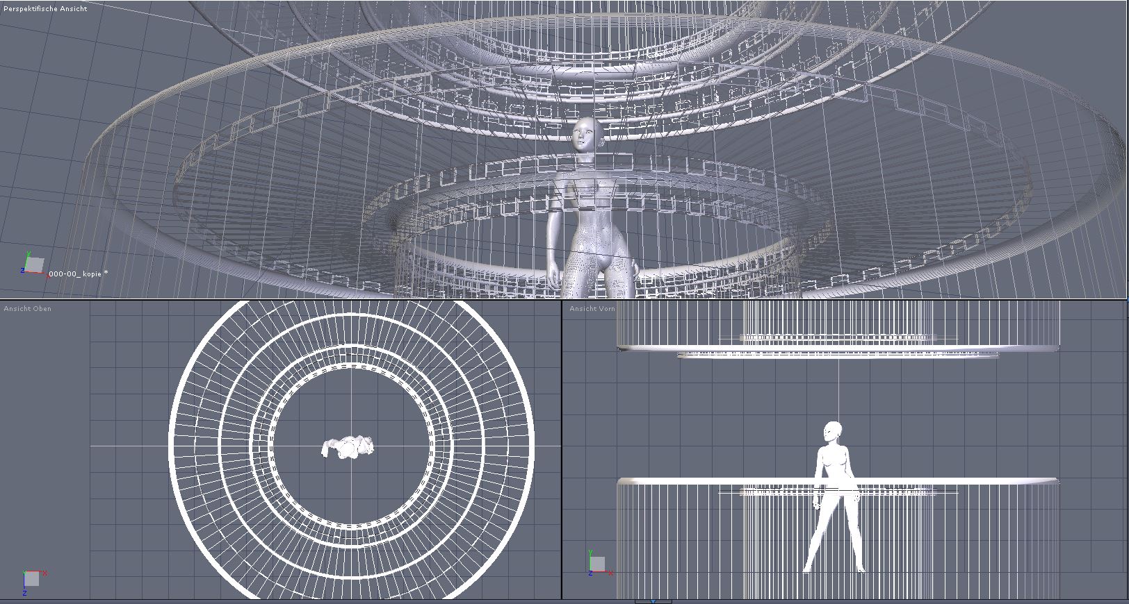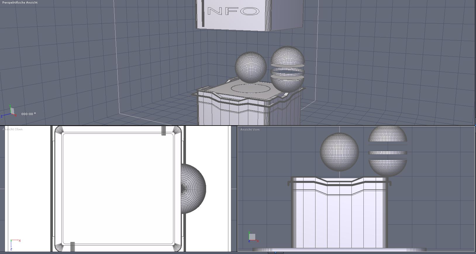 Eine besondere Herausforderung stellte die Gestaltung des Informationsterminals dar: Es galt, eine möglichst große Menge an Informationen in einem 360°-Bild unterzubringen. Die Lösung hierfür fand sich in der Verwendung von Kugeln als Informationsträger.