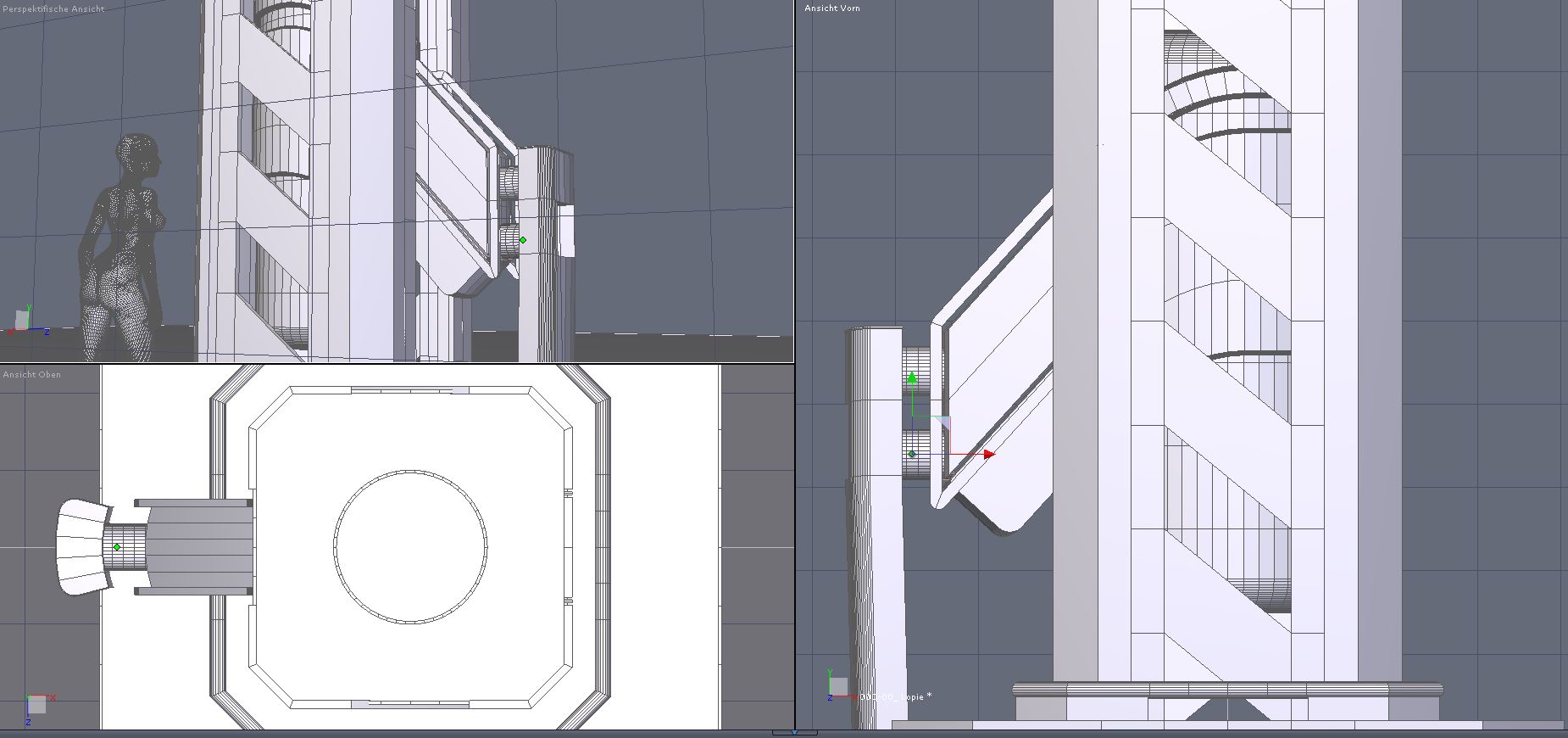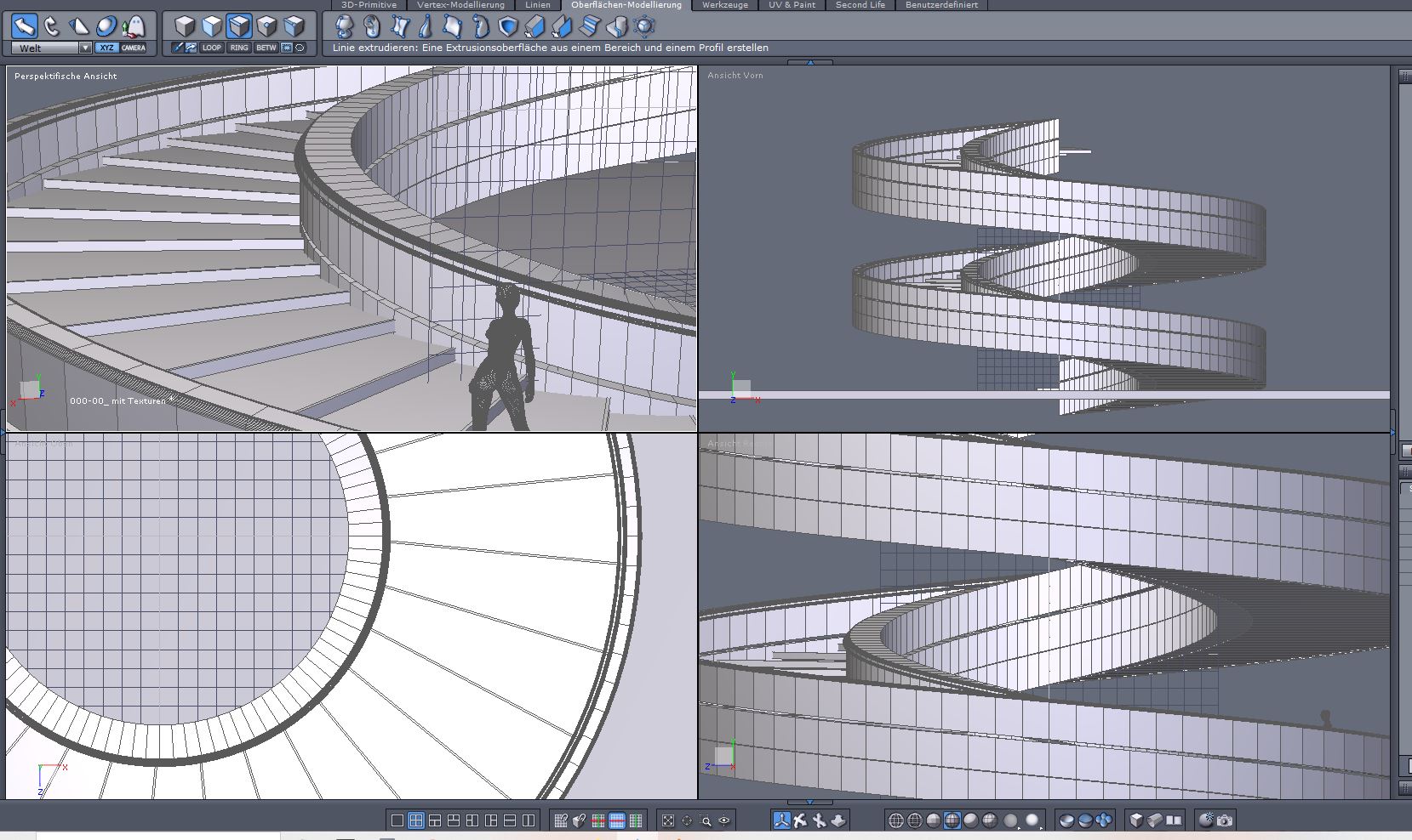 Das ist korrekt, aber nicht nur das – bei der Treppe verwende ich eine Spirale, wobei die Stufen in der Mitte abgesenkt werden. Inzwischen habe ich jedoch gelernt, dem entgegenzuwirken.