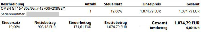 Aktueller Preis 03.07.2025 = 1499 EUR