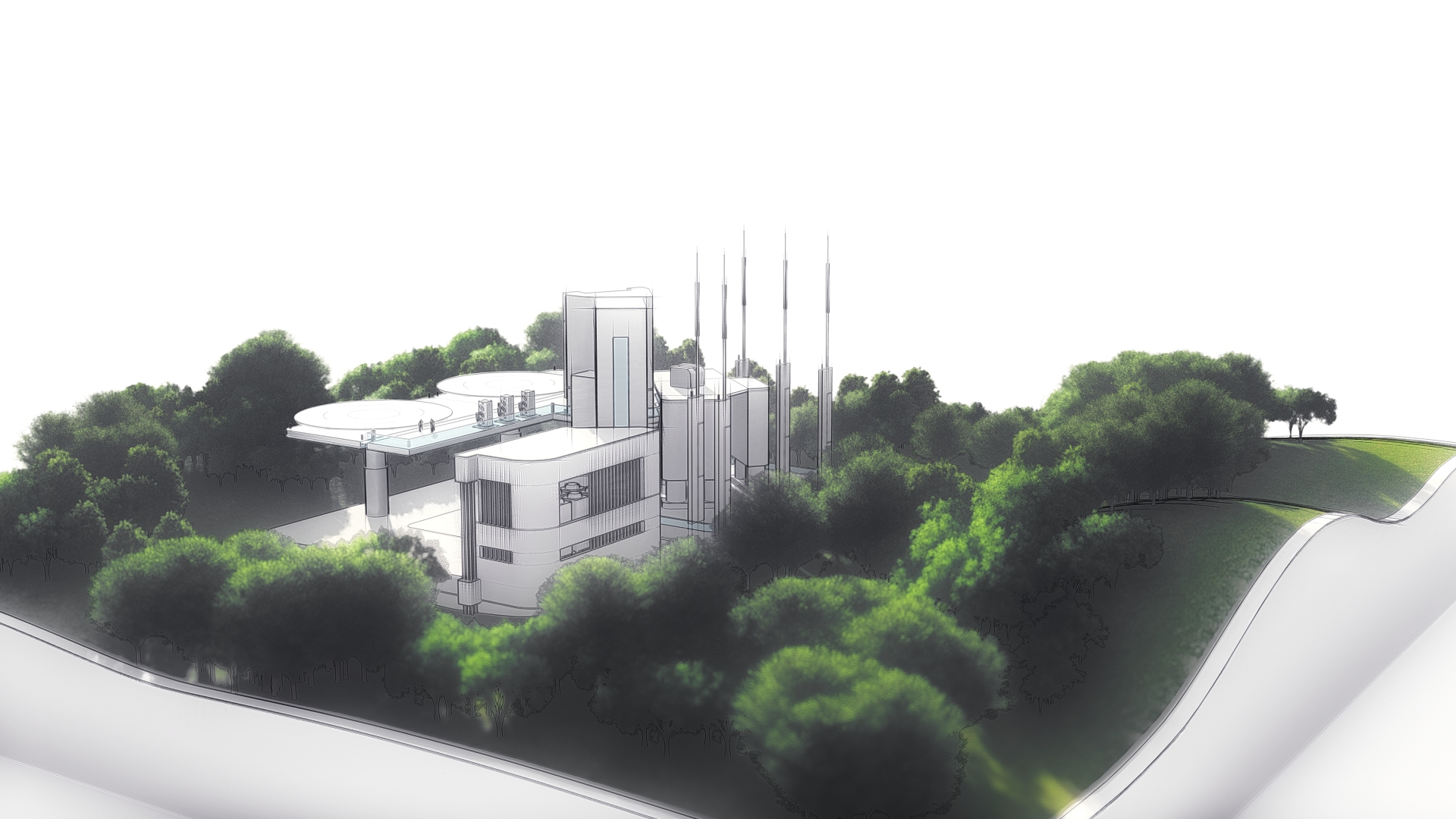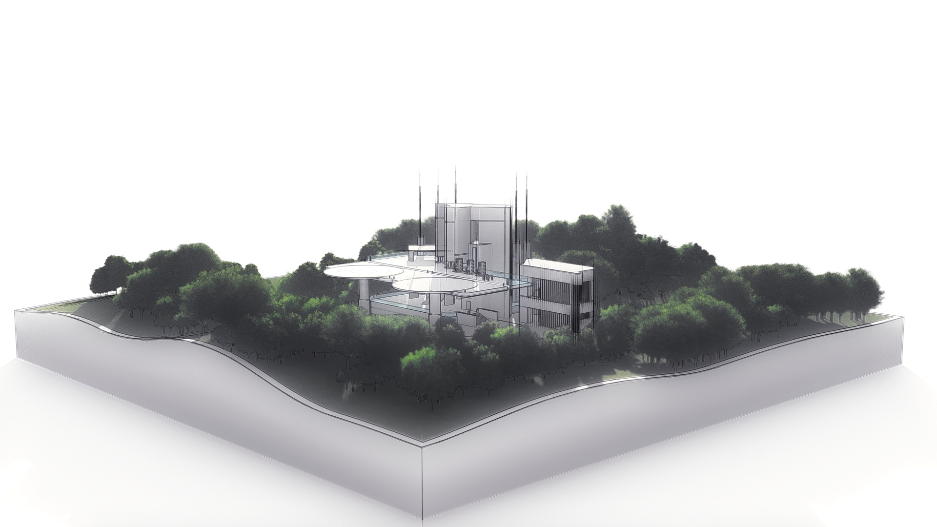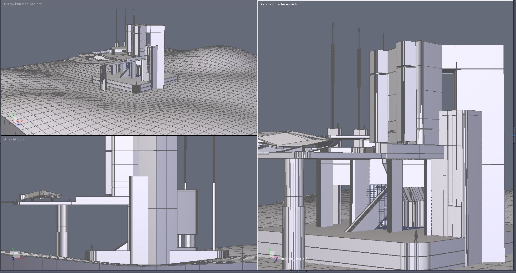 Die neue Struktur wird etwa 20 Meter hoch ausgeführt und erinnert an einen Bunker. Ergänzend ist ein Turm vorgesehen; an der Oberseite befindet sich eine ebene Fläche mit kreisförmigen Aussparungen.