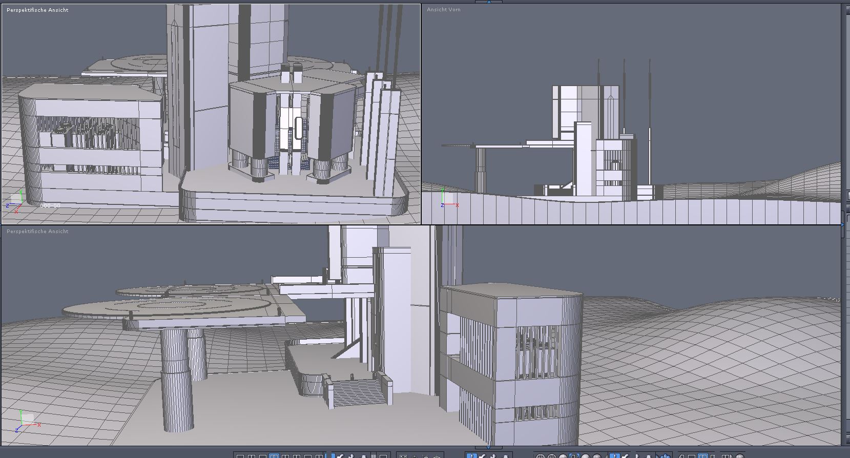 Hier sehen wir die Wartungsbasis mit einem neuen Nebengebäude, in dem der Wasserstofftank untergebracht ist. Dieser versorgt die Drohnen mit dem nötigen Treibstoff für ihre Turbinen.