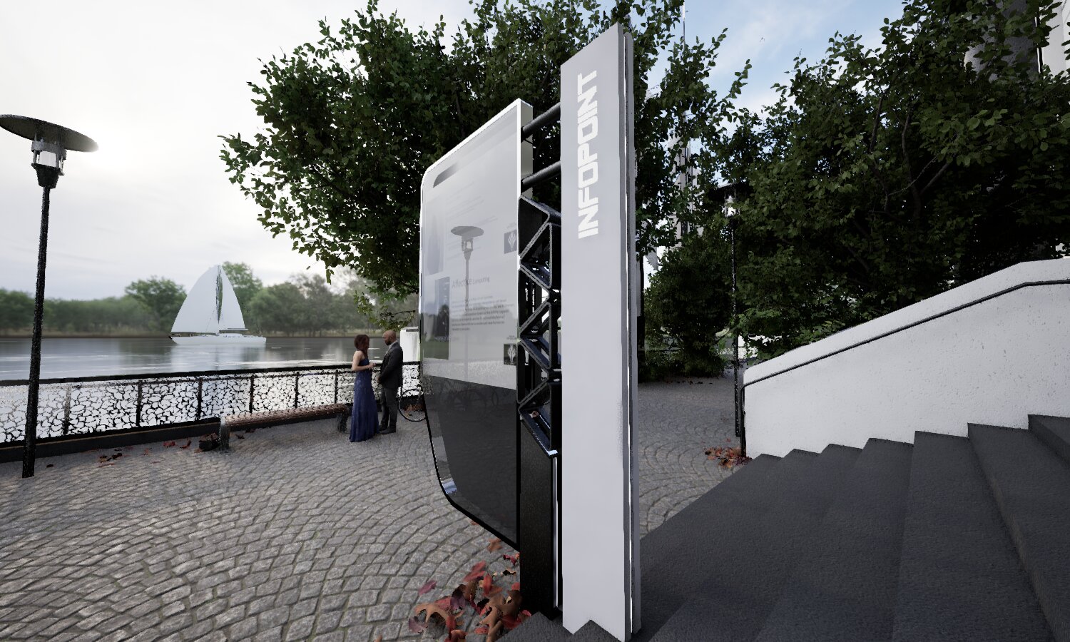 Kommen wir daher nun zum Wesentlichen: Der Infopoint ist fertig und vollständig verbaut. Später wird es dem Besucher möglich sein, durch Anklicken der Grafiken diese zu vergrößern und bequem durchzublättern.