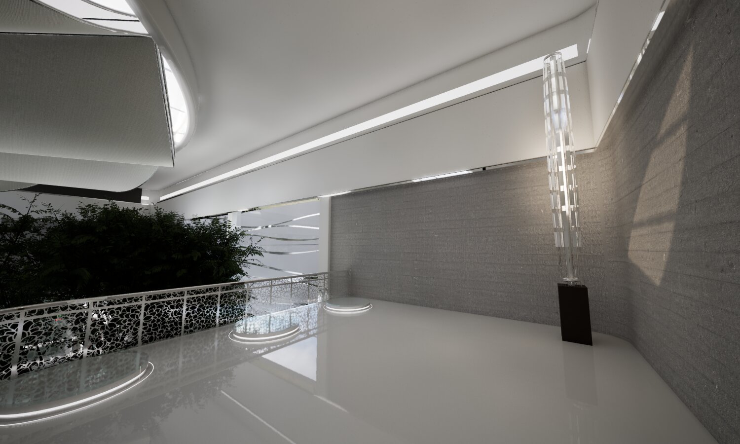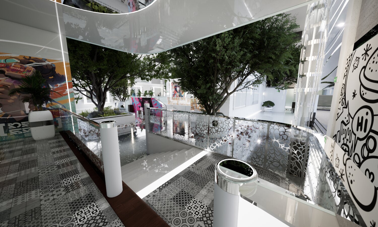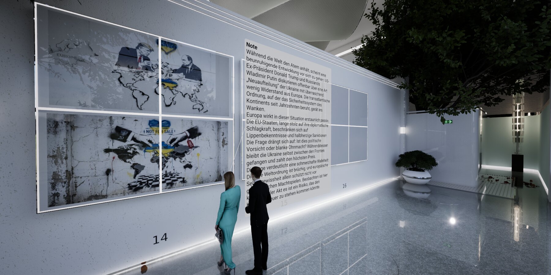 Im ersten Obergeschoss wurde ein neuer Informationsraum eingerichtet. Künftig sollen Besucher die Möglichkeit haben, sich per Teleportation in einen separaten Bereich zu begeben, der zusätzliche Optionen zur Präsentation multimedialer Inhalte bietet.