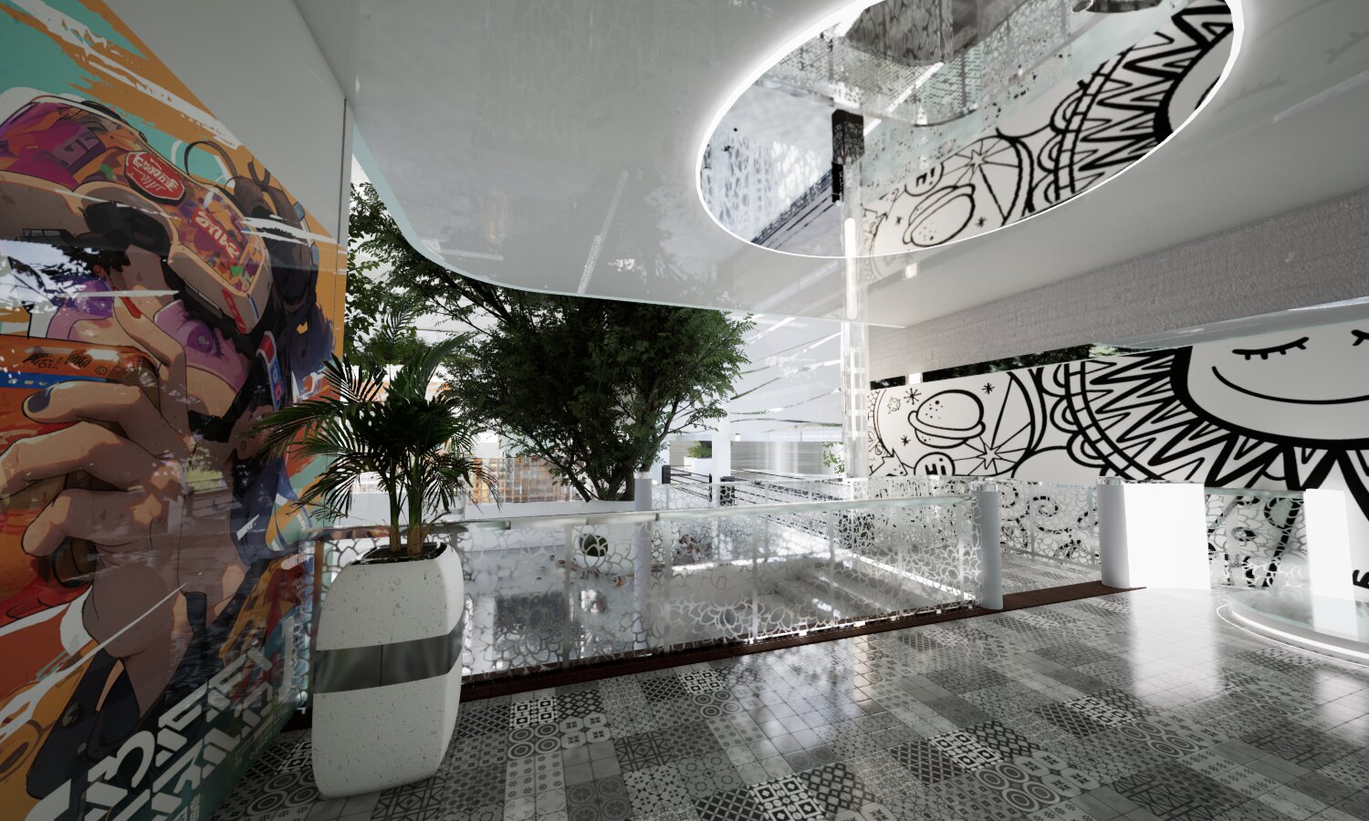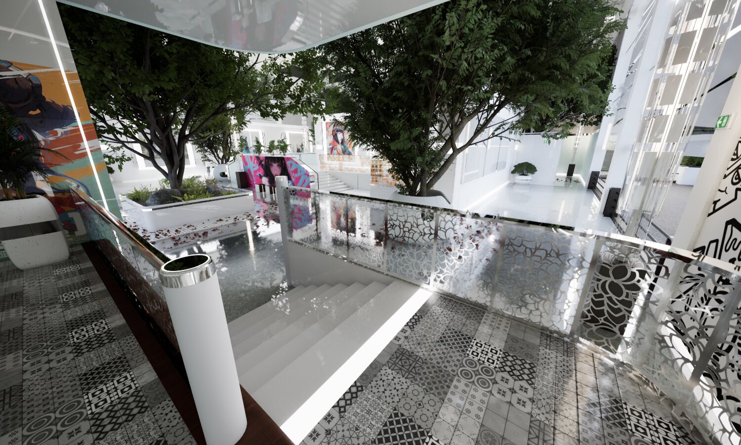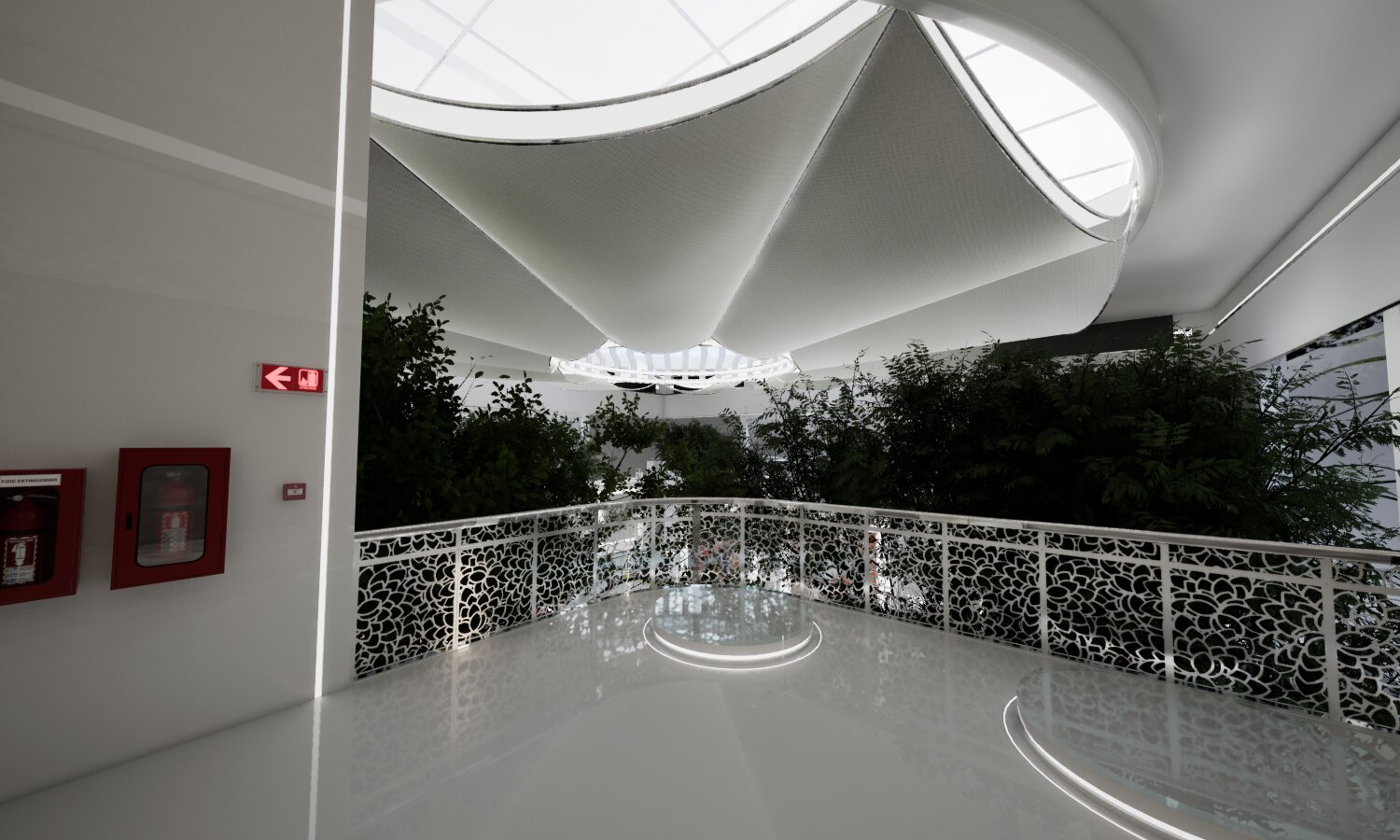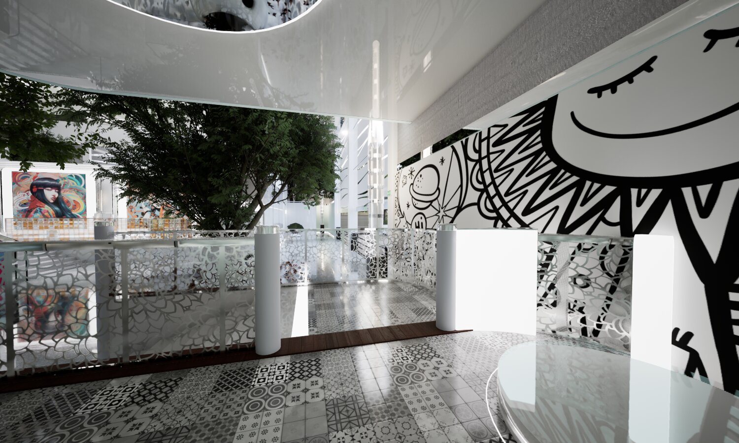 Im ersten Obergeschoss wurde ein neuer Informationsraum eingerichtet. Künftig sollen Besucher die Möglichkeit haben, sich per Teleportation in einen separaten Bereich zu begeben, der zusätzliche Optionen zur Präsentation multimedialer Inhalte bietet.