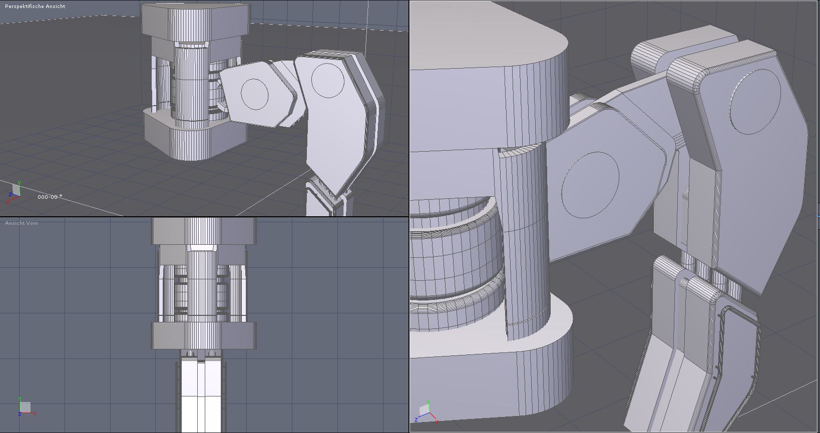 Aktuell arbeite ich an einem kleinen Roboter, der Besuchern in der Galerie bei der Orientierung helfen soll. Im Moment hänge ich noch an einem stimmigen Konzept für die Verbindung von Beinen und Korpus. Ich mache später weiter, jetzt bin ich erst einmal müde.