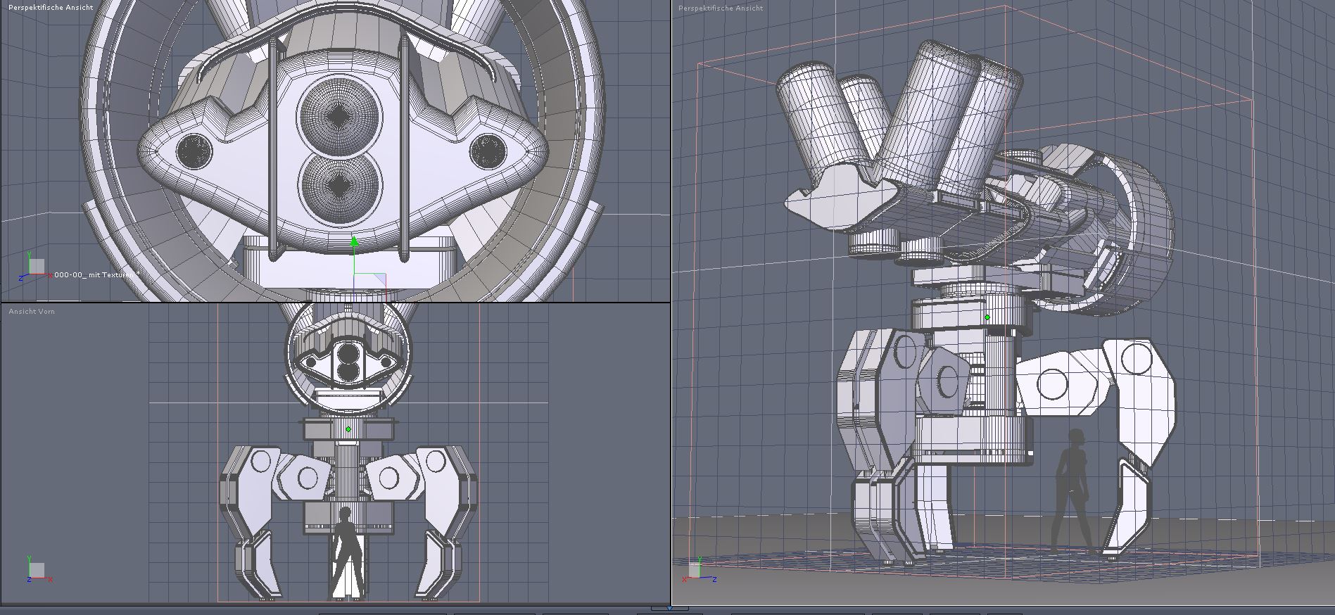 Die Größe wurde angepasst, die Augen überarbeitet; zudem wurden Griffe und Lüftungsgitter montiert. Die Arbeit wird nun an einem anderen Rechner fortgesetzt, um das gesamte Modell zu rendern. Und damit es nicht langweilig wird, folgen hier weitere Auszüge aus dem Handbuch.