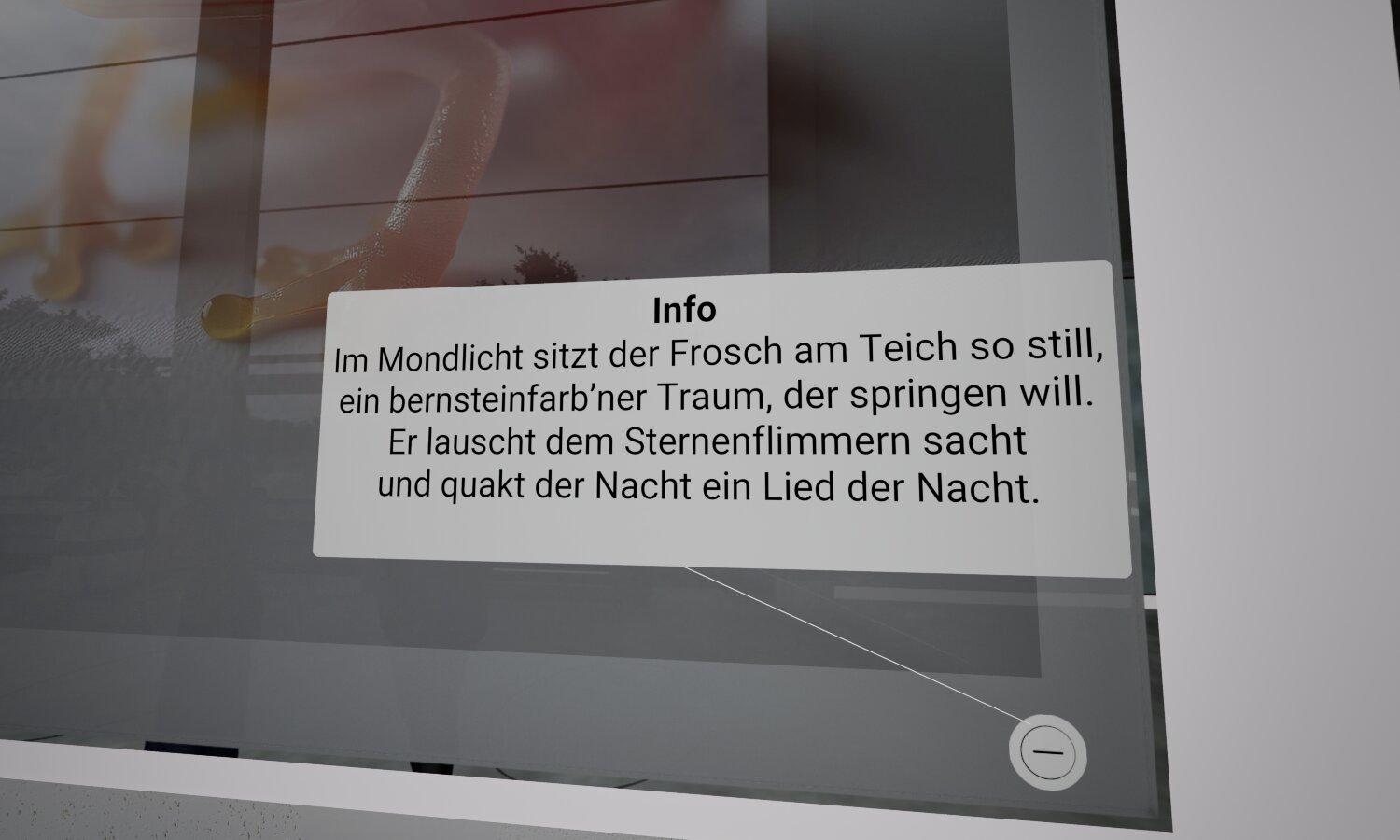 Endlich habe ich Zeit gefunden, die VR-Galerie weiter auszubauen. Es dauert zwar ewig, bis alles seinen Platz gefunden hat, aber ich arbeite konsequent mit dem Koordinatensystem. Das zahlt sich später aus, weil am Ende alles sauber und exakt positioniert ist.