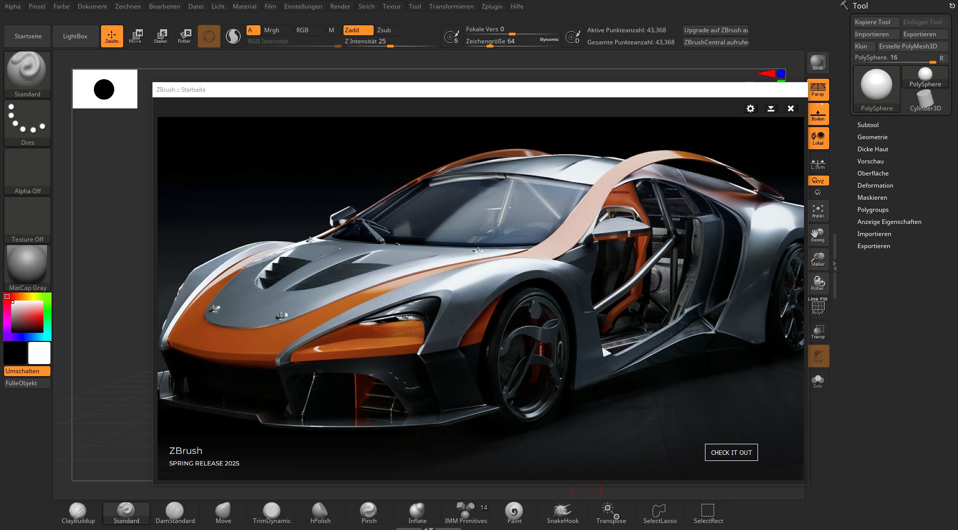 - Nicht mehr möglich: ZBrush Core ist ab dem 30. Mai 2025 nicht mehr erhältlich.