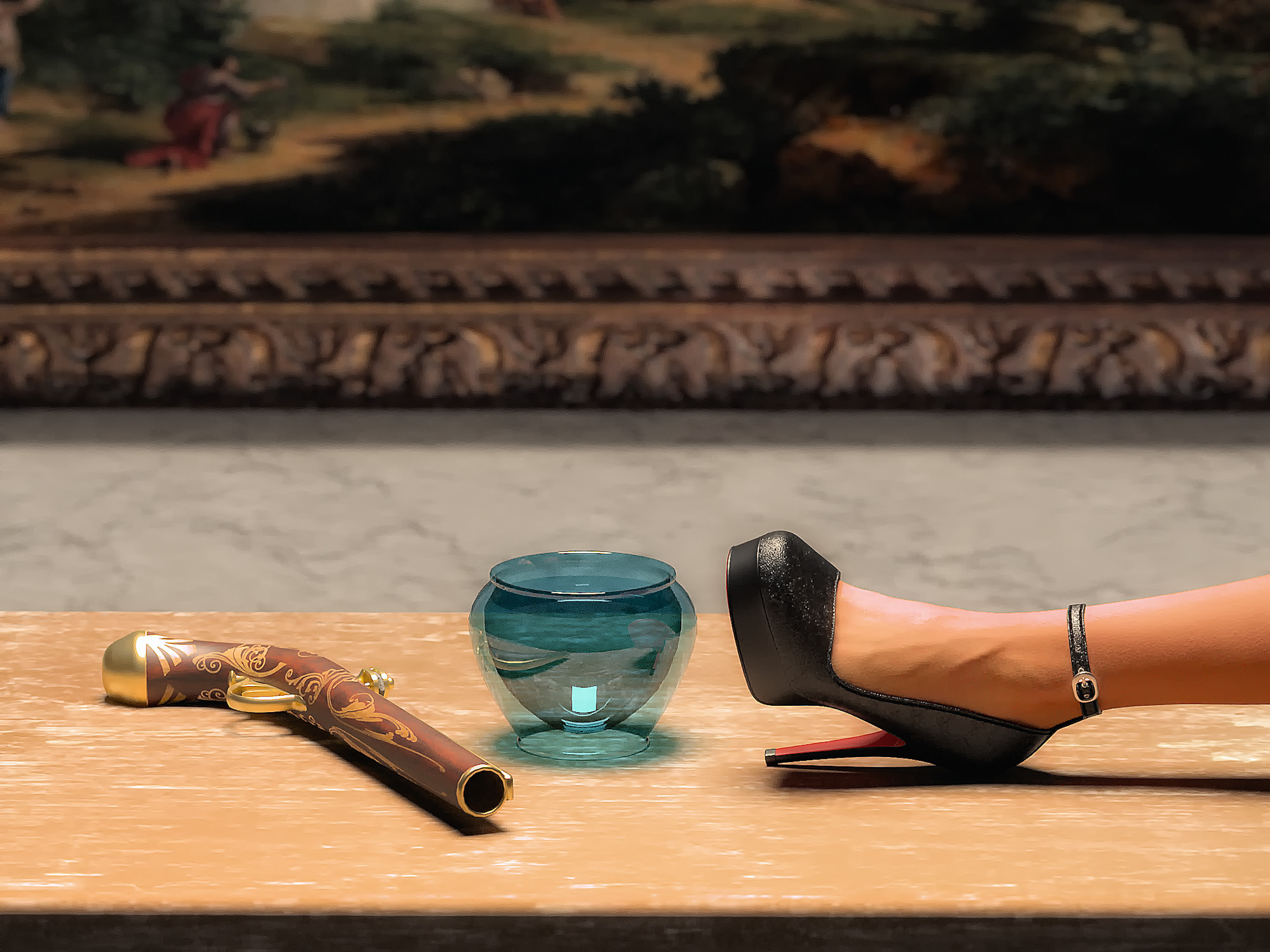 Gerendert wurde in dem Fall in LuxRender. Die Oberflächen habe ich in Reality vorher angepasst.