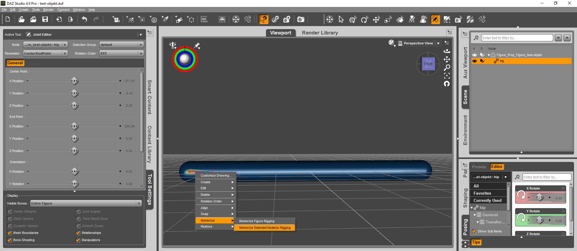 8. Bones makieren, rechte Mouse-taste auf den Bones und Memorize > Memorize Selected Node(s) Rigging