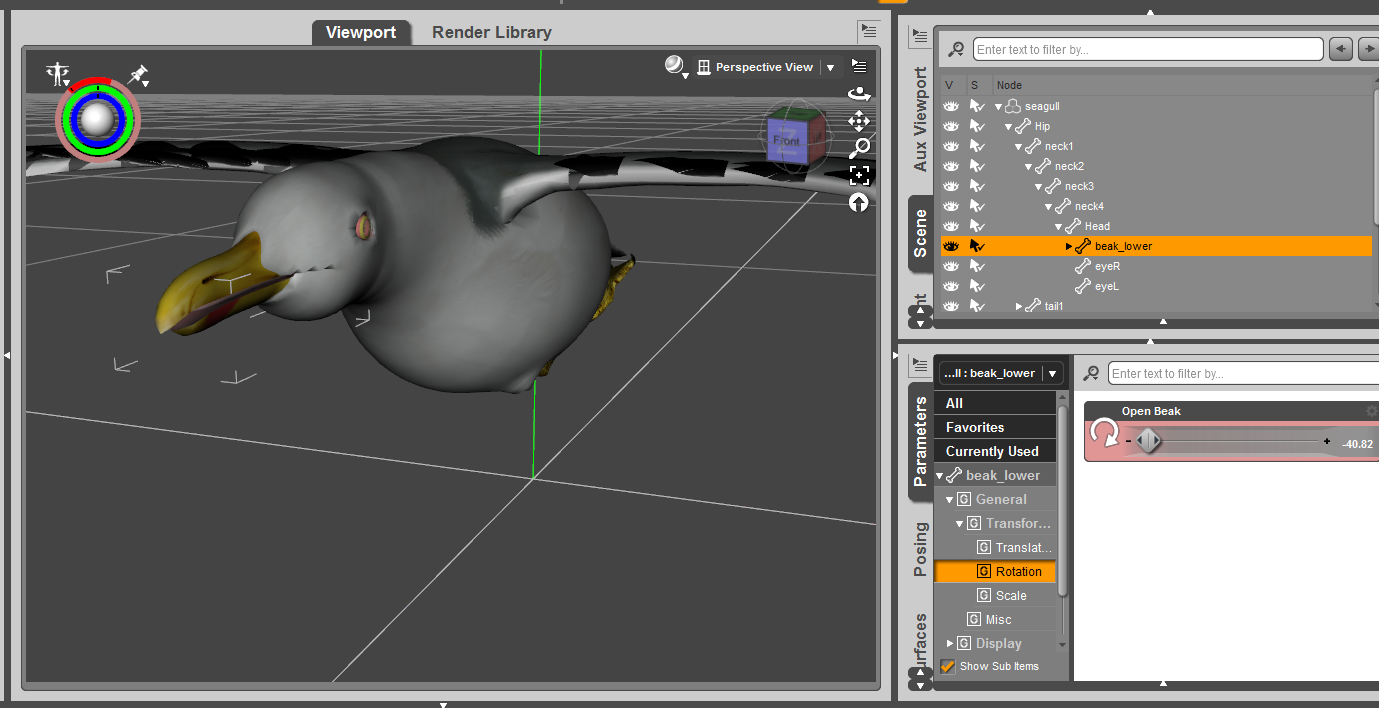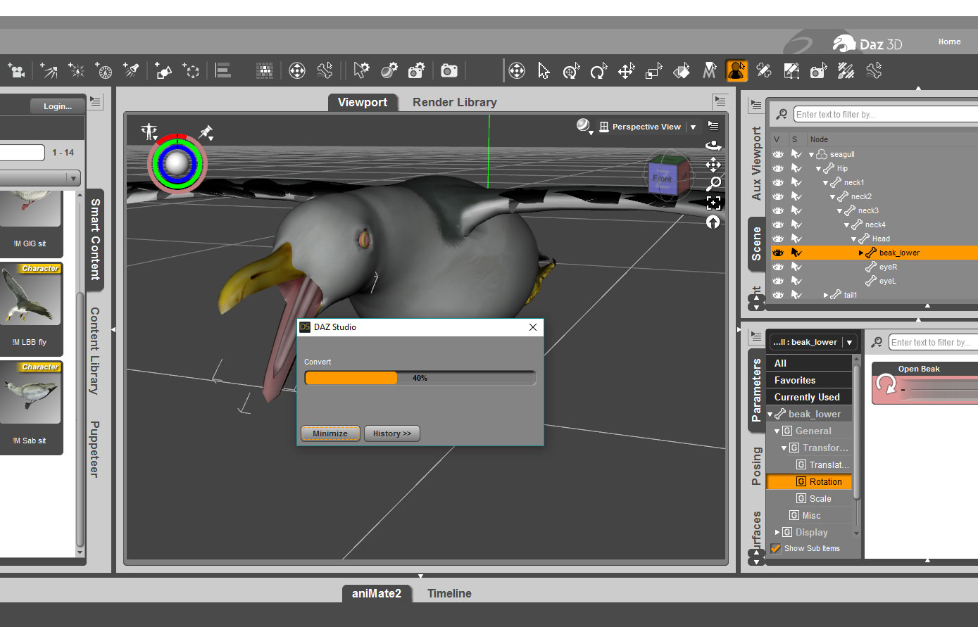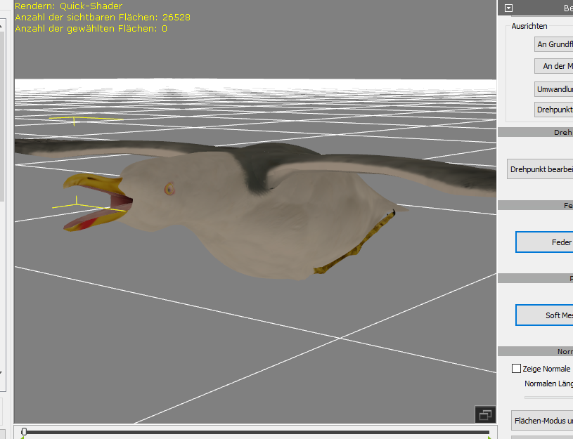 Nun hat sie aber den Schnabel auf, im Original und die Beine in der Flugposition stehend. Die Beine ist nicht das Problem, dich kann ich bewegen an den Körper, dann drehe ich den Schnabel zu, sieht auch gut aus, dann exportiere ich die so mir gefallende Position in fbx und wenn ich in 3dfxchange das fbx öffne, ist der Schnabel offen, die Beine und alle anderen Veränderungen wie sie sein sollen, nur der Schnabel ist offen., man könnte meinen ich kriege dann in Iclone den Schnabel zu, fehlanzeige der ganze Kopf verdeht sich da, also muss ich versuchen den Schnabel in DAZ zu schließen und ihn so zu exportieren, ich habe gesehen, beim exportieren, öffnet sich der schnabel beim rechnen kurz,