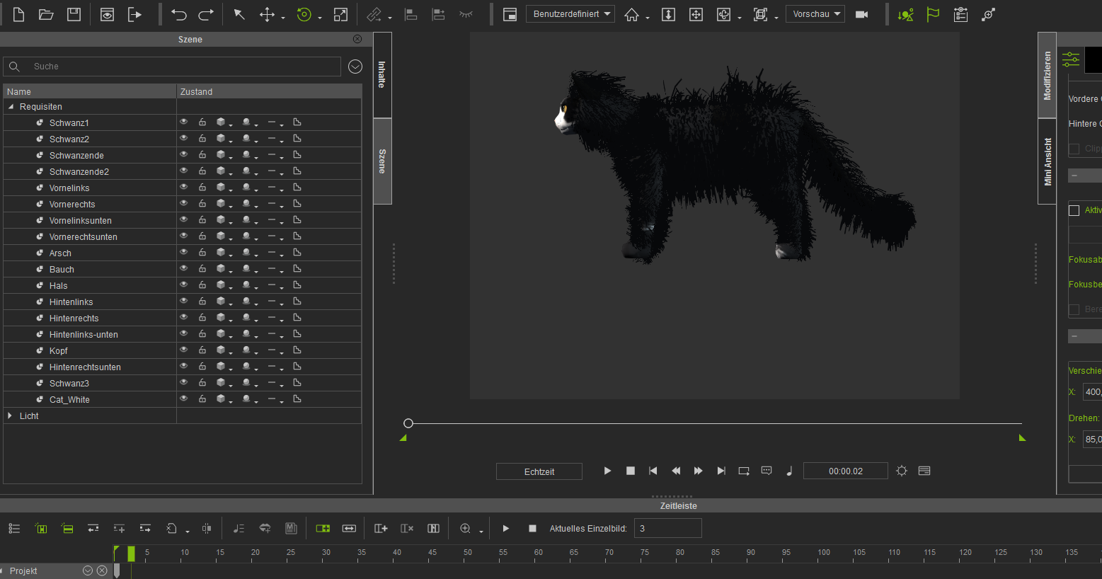 habe für jeden Bone ein Haarbuschel gemacht alle rein in Iclone, leider kann man die Büschel nicht mit den Knochen der Katze verbinden, also so schein es nicht zu funkionieren