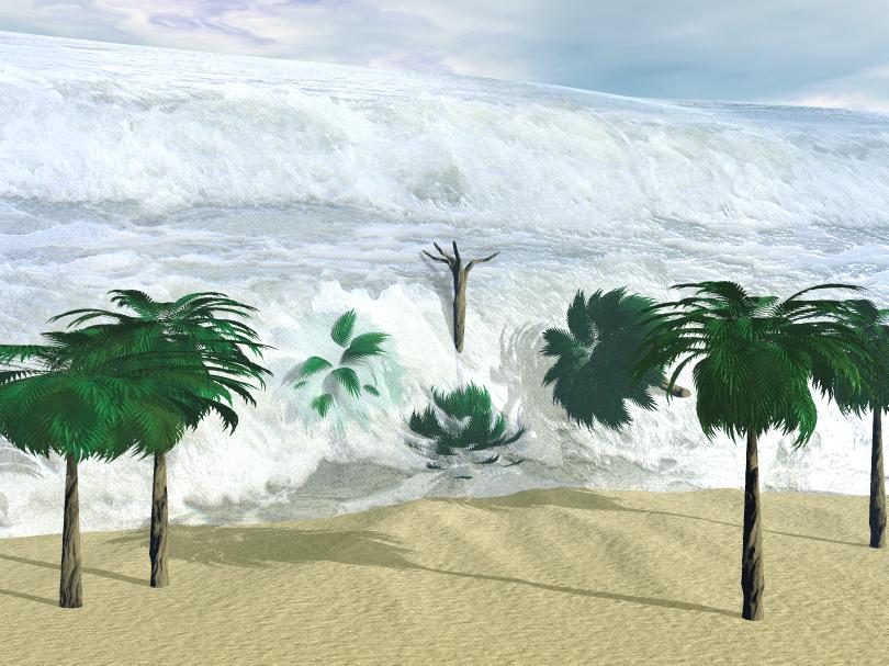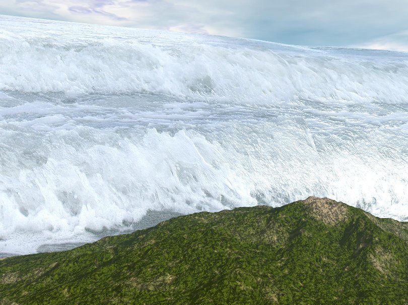 @krötchen ne tnumami sieht am anfang wie ein grosser berg aus wasser aus. kaum wellen, die entehen erst wenn, wenn sie auf ein hindernis trifft oder die nachschiebenden wassermassen schneller sind als das zurückflutende wasser