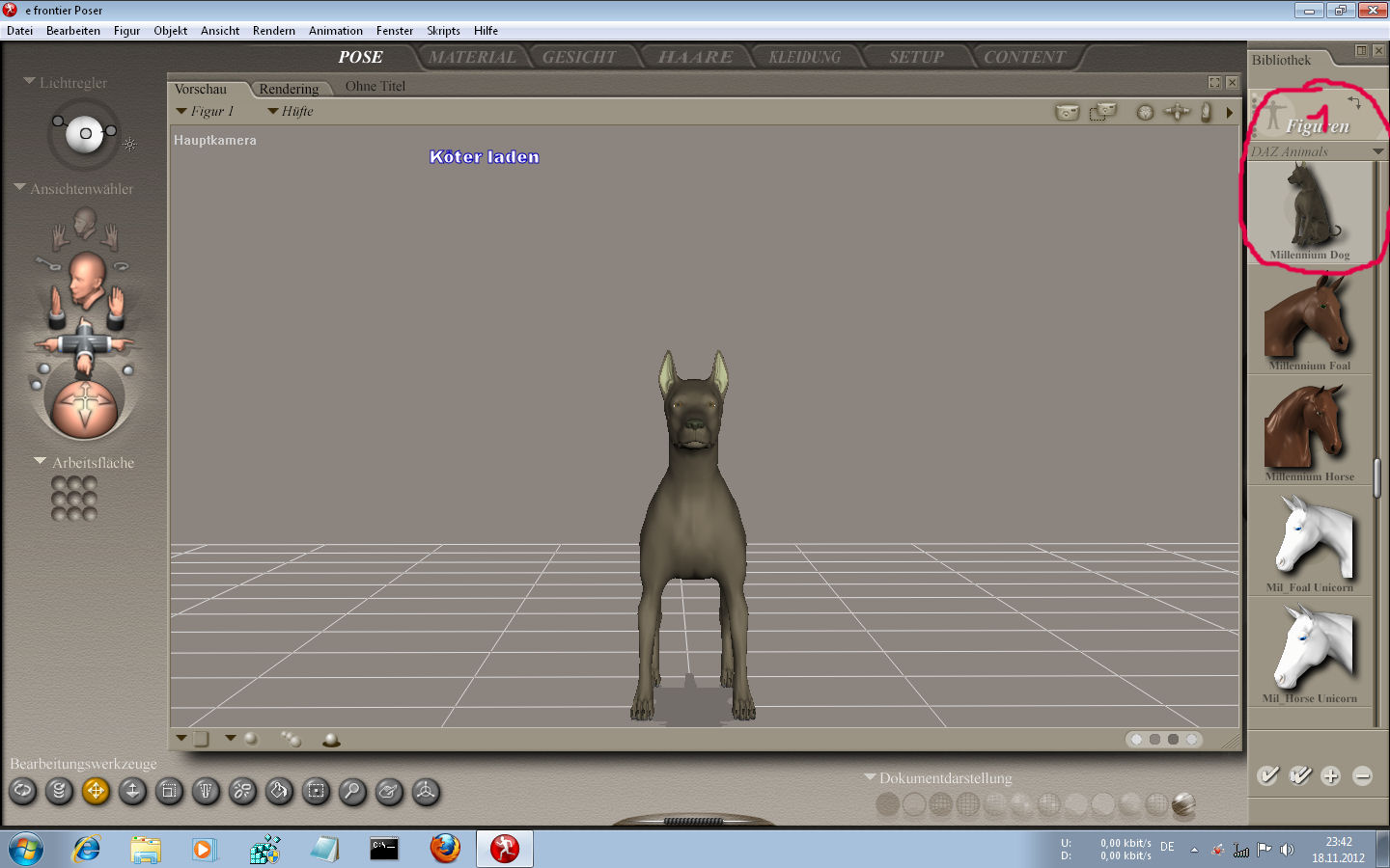 @ axo, hab mal drei bilder angehängt , sind in poser7 , in drei schritten zum köter, standard zwar aber du kannst ja noch dran rumschrauben ![]()