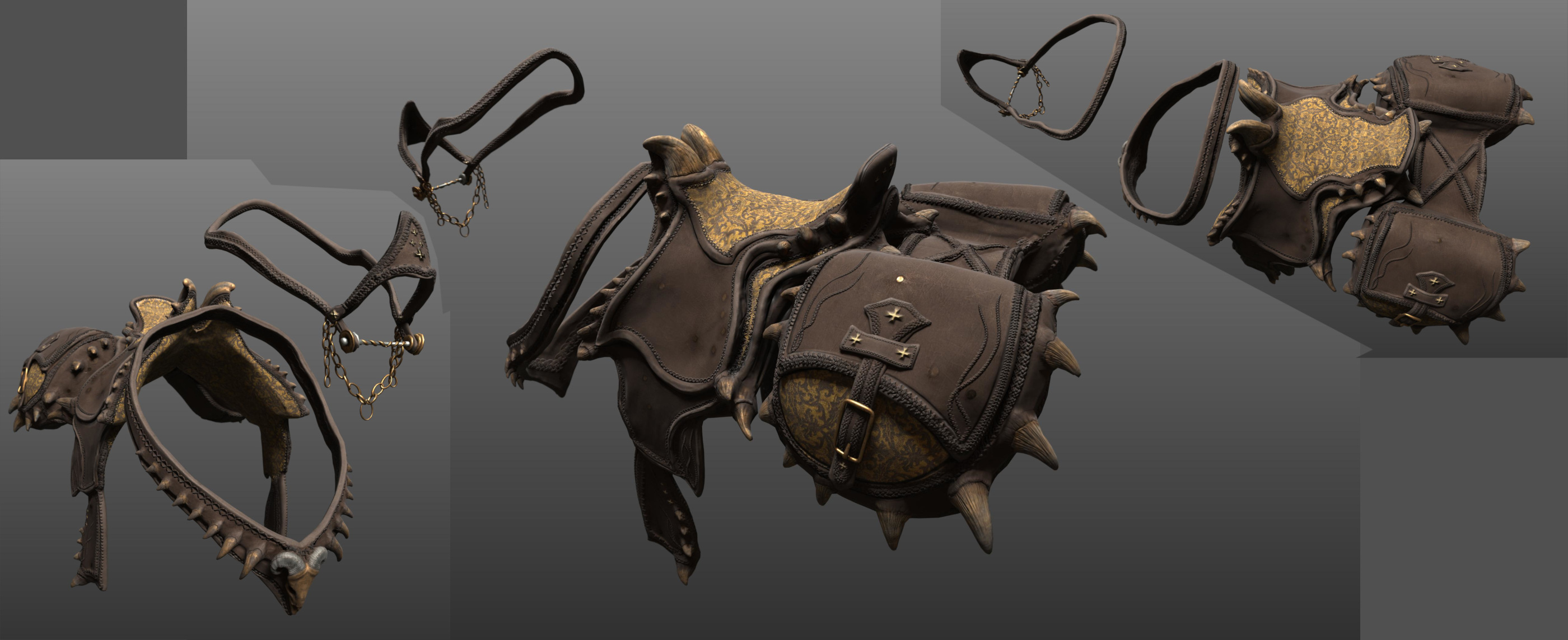 dann ein feinerer Sculpt in ZBrush mit textur in dem groben Sattel, sowie den "Zusatzhörnern":