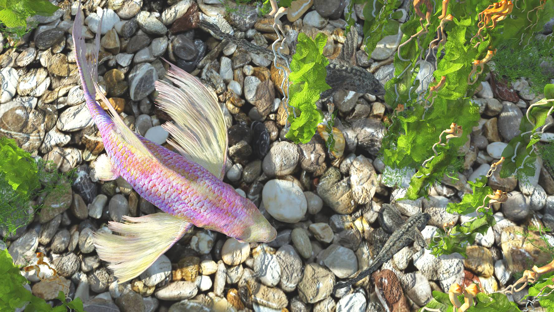 auch im Bild zu finden sind Brittas knuffige saugende Rhinofische. Die haben von mir lediglich eine neue Textur erhalten