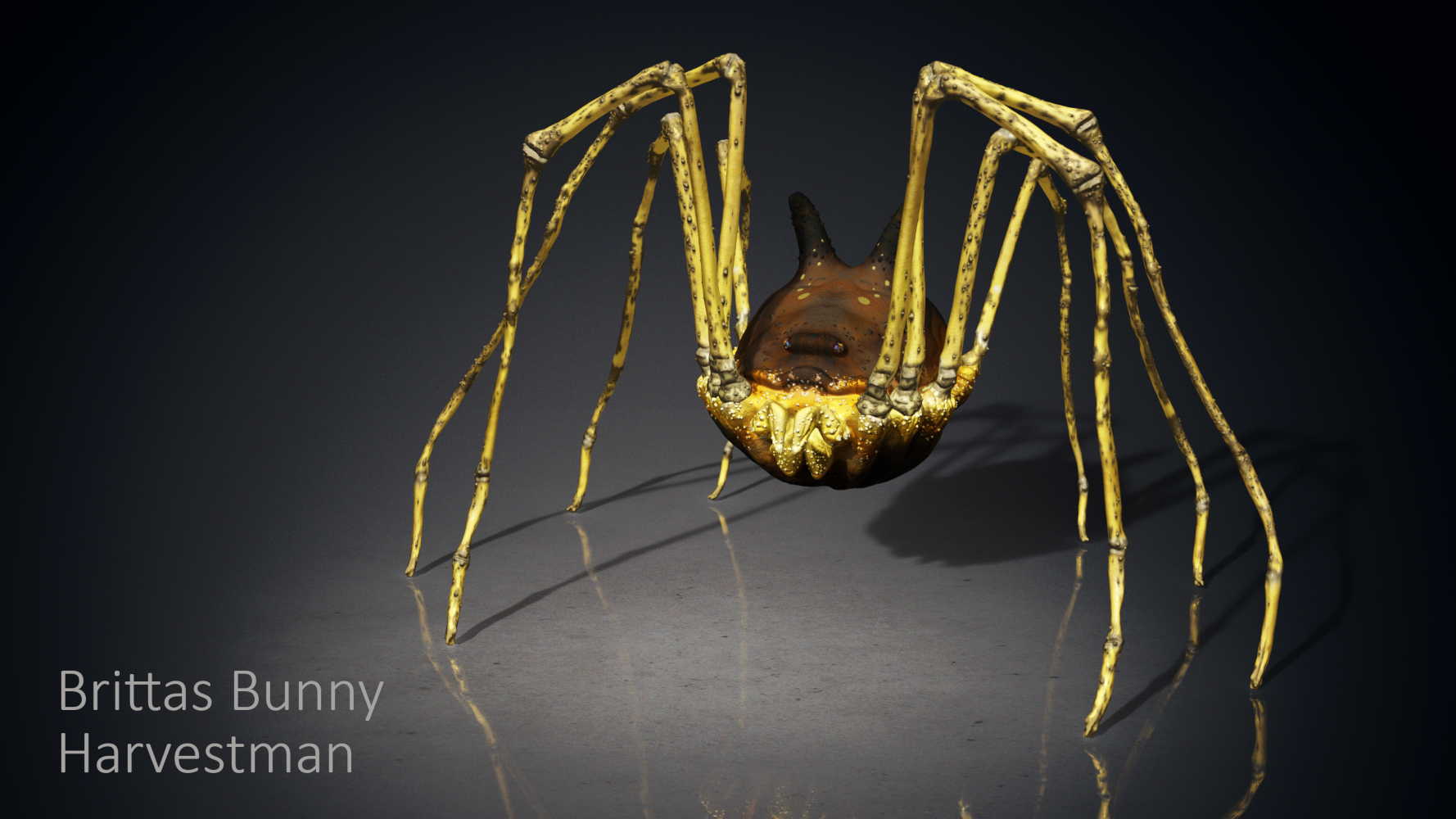 Mermaids Bunny Harvestman.Die Tierchen gibt es wirklich und ich durfte den Sculptris Sculpt von Mermaid noch nachtexturieren und riggen. Nun kann er sogar mit den Ohren wackeln