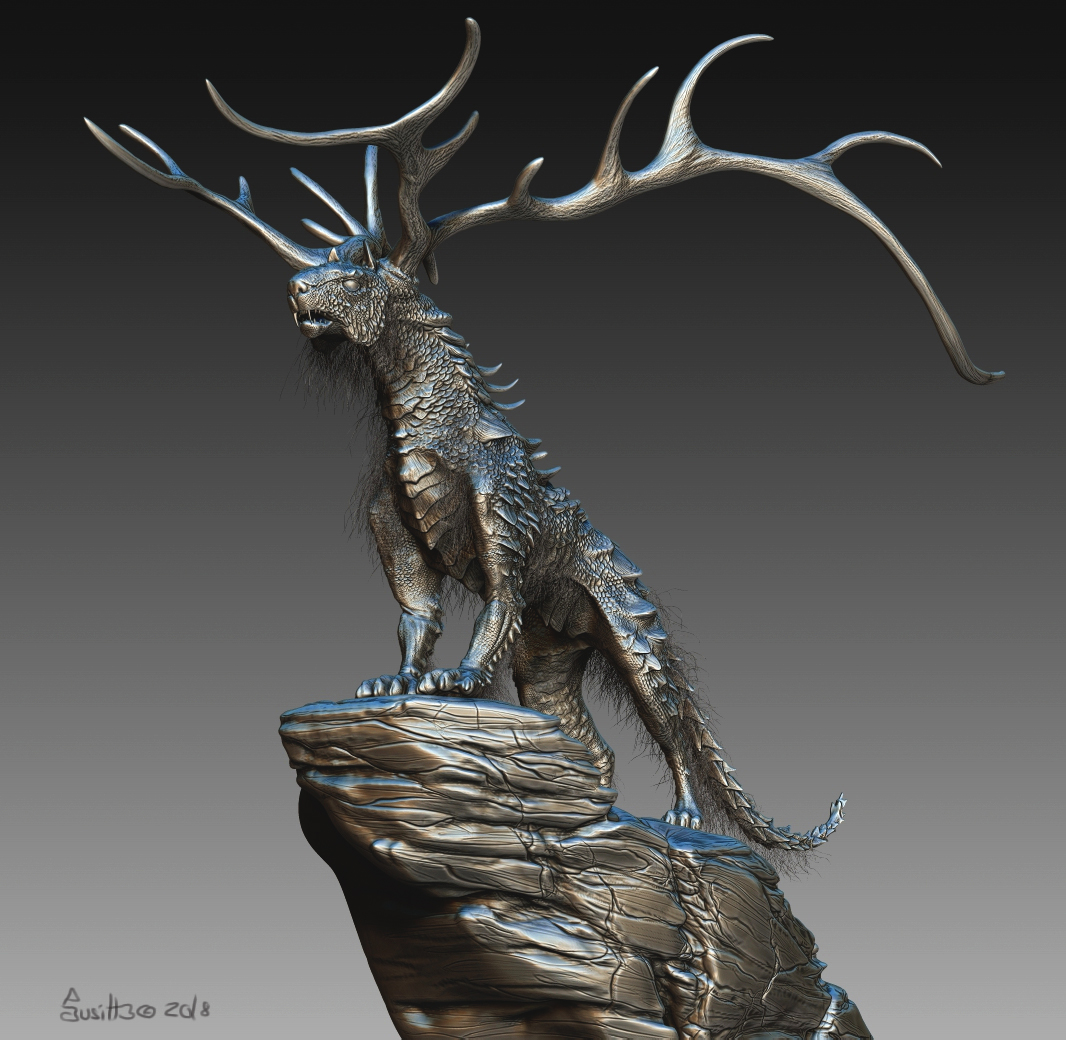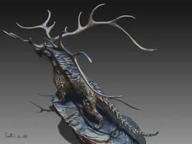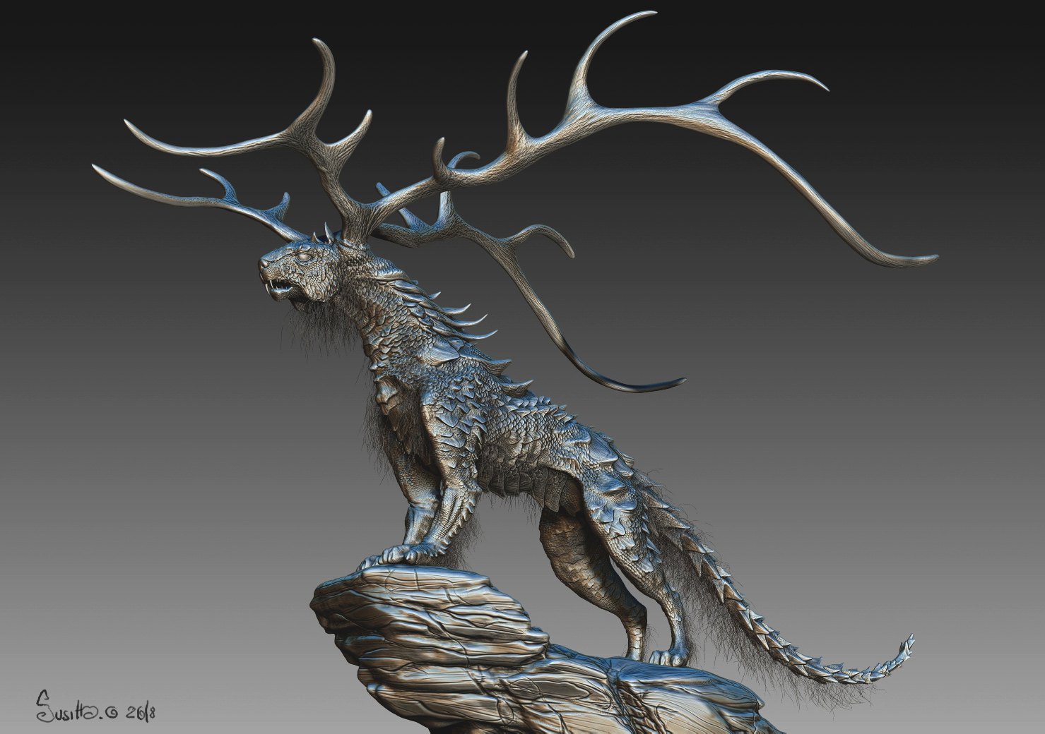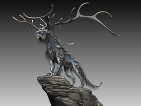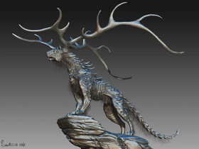 Nun versuche ich gerade mal ein paar Katzenartige zu sculpten. Der Löwenelch ist eine der größten geweihtragenden Pseudokatzen Ari Moons. Die Tiere tragen ihr mächtiges Geweih nur während der Paarungszeit was zu einer enormen Belastung führt, da die Männchen während der Zeit in der das Geweih die volle Größe erreicht hat, nicht jagen können und nur von ihren vorher angelegten Reserven zehren. Viele der Tier erleben das Ende der anstrengendenBrunftzeit nicht mehr und sterben vorher an Auszehrung und Erschöpfung. Nur die Stärksten können so ihre Gene weitergeben.