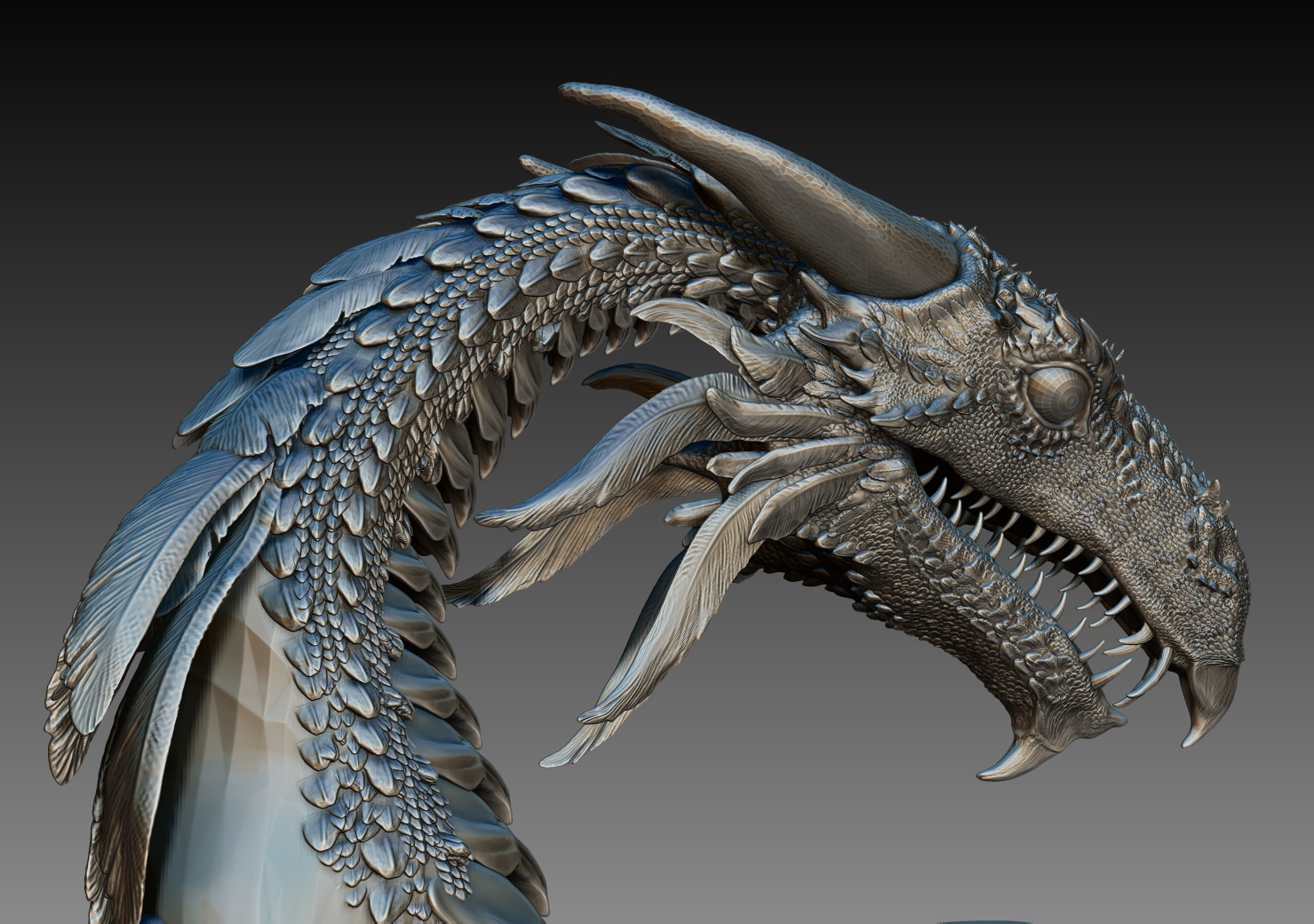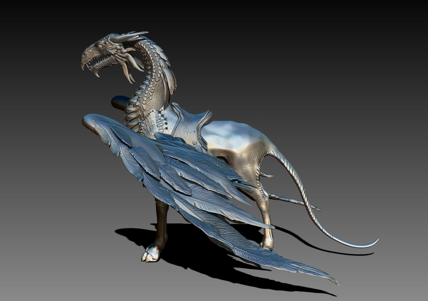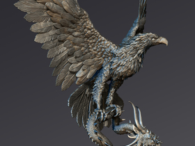 Der Adler ist tatsächlich für den Druck gedacht, deshalb hab ich die Flügel auch aus echter Geometrie gemacht,. Die kleinen Federn und Schuppen hab ich mit dem Alpha Pinsel gemacht. Ich hab leider noch keine Ahnung, was man für den Druck für eine Auflösung braucht, als ich das letzte Mal etwas an einen Hobbydrucker gegeben hab, sind ihm sämtliche Computer abgestürzt, wegen der hohen Polyzahl. Aber ich steh nun mal so auf Feinheiten