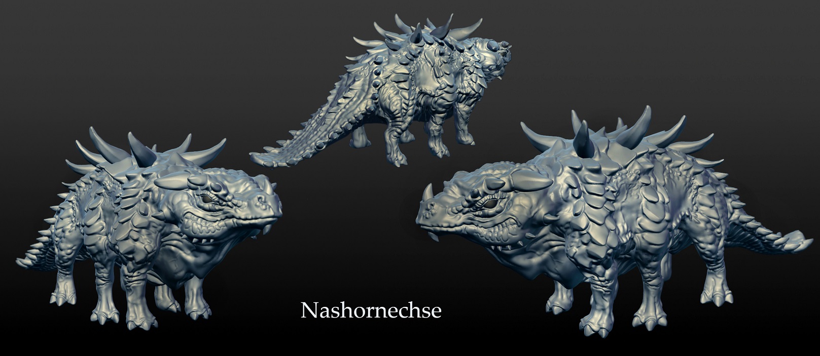 Nun gehts wieder weiter mit meiner Herde Nashornechsen. Ich hab mein Kälbchen fertig. Ich hab es ein bisschen grauer gemacht als die Alttiere naxh Kushankus Anregung. Gerade bei einem Jungtier finde ich, schaut das ganz gut aus.