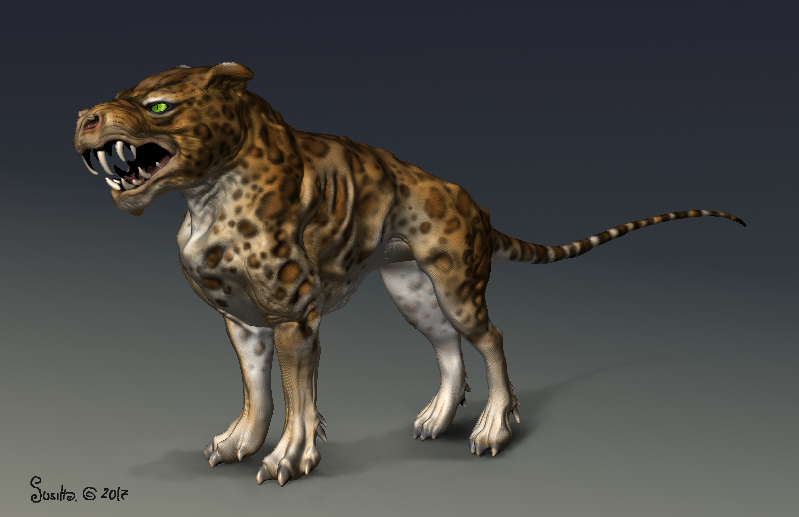 Danke @3dfan und @esha für die Hinweise, wie es aussieht, wird es ein bepelzter Räuber der mein armes Nashornechsenkalb angreift.