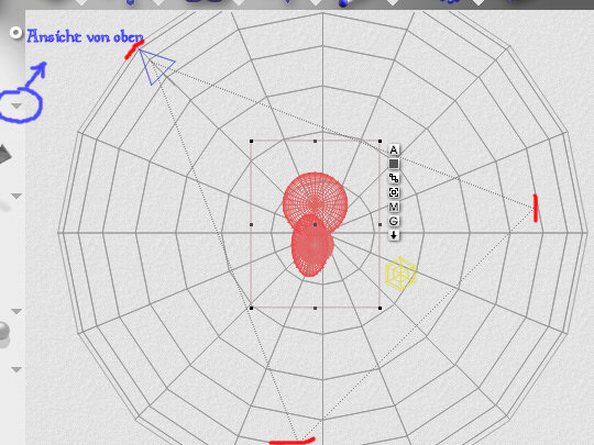 Du löscht in der Ausgangsszene die Bodenebene. Erstellst eine Kugel, wählst die Ansicht von oben und machst die Kugel so groß, dass die Kamera sich in der Kugel befindet. Siehe Bild1