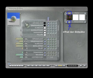 Jetzt musst du natürlich noch auf der rechten SEite in dem Texturfenster den Bildeditor auswählen und dein Bild laden (dazu auf das B und darüber auf die rosa Kugel klicken und der Bildeditor öffnet sich)Natürlich die Metabälle noch erstellen und ihnen das Spiegelmat zuweisen, aus der Rubrik "einfachundschnell" Spiegel.